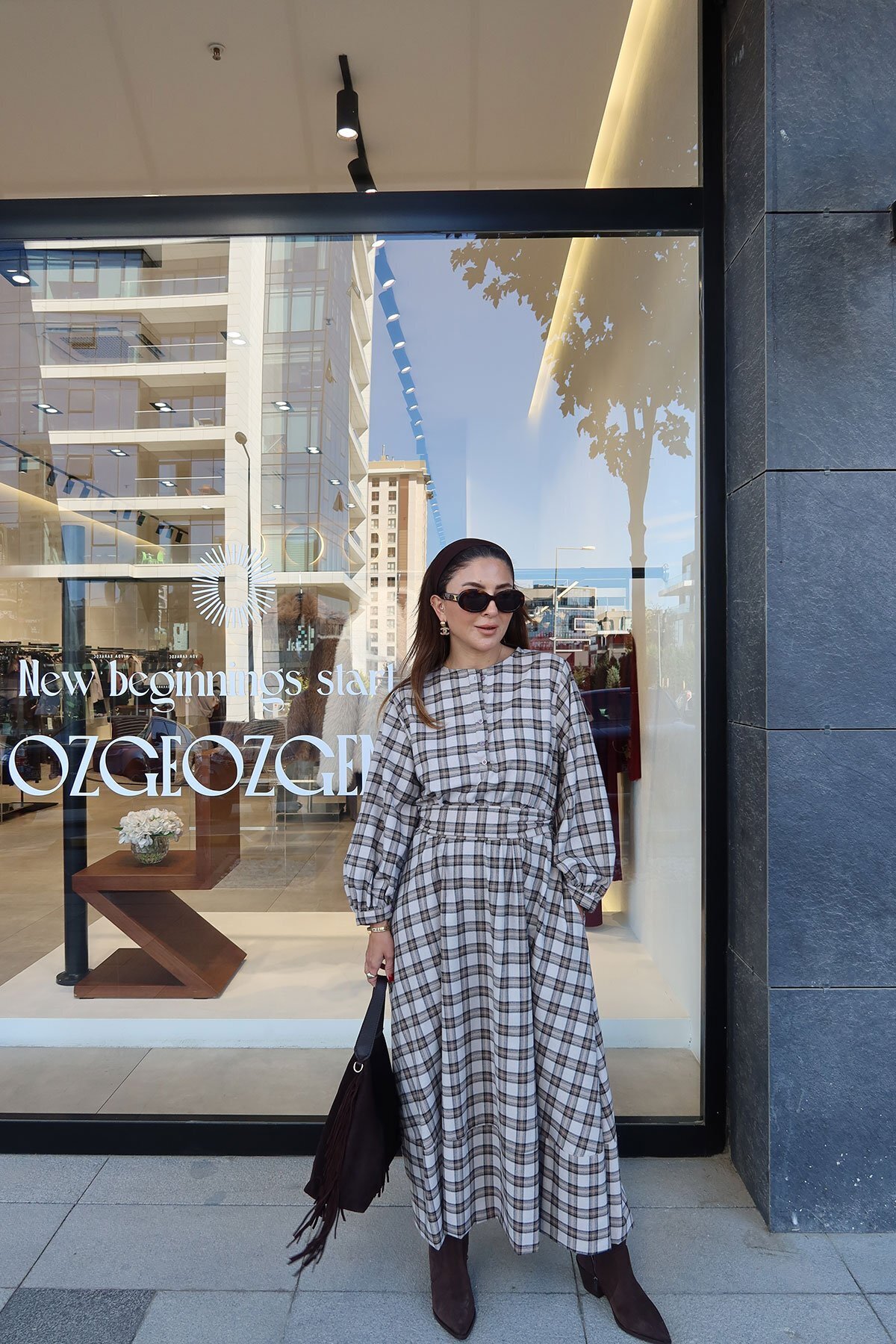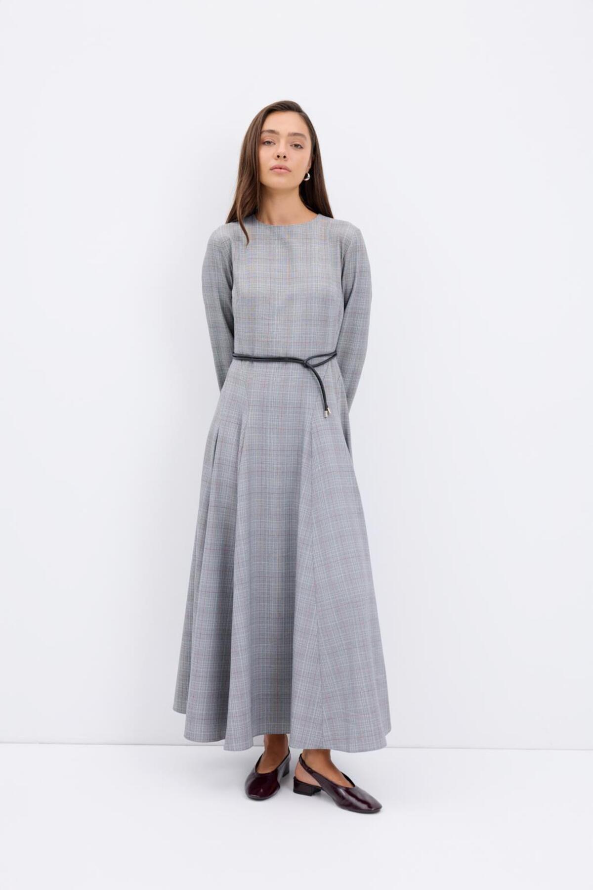Ekose Desenli Parçalı Uzun Elbise Gri Ekose Desenli Parçalı Uzun Elbise Gri KB26KELB001 42
