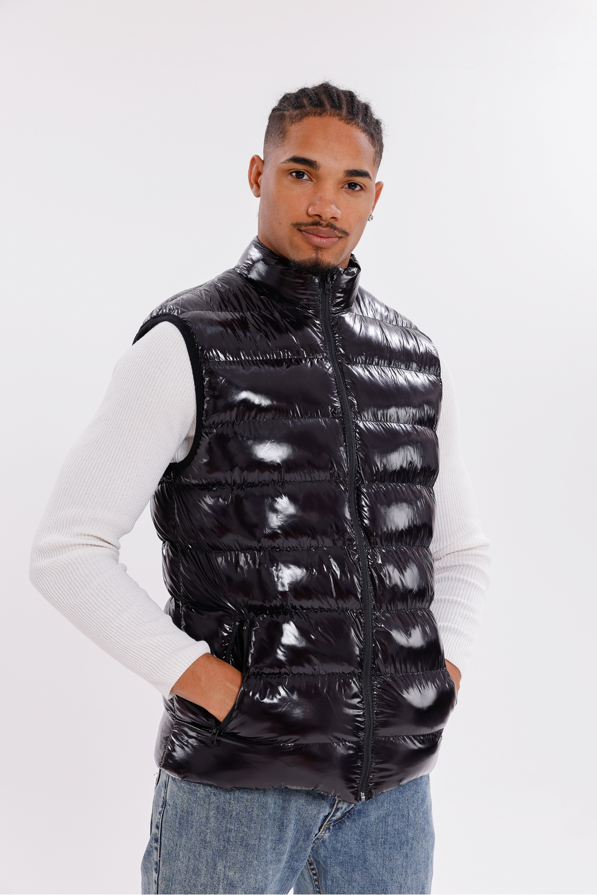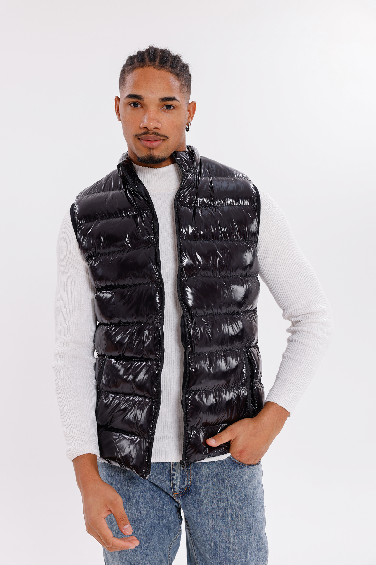 Erkek Siyah Parlak Kumaş Şişme Yelek Erkek Siyah Parlak Kumaş Şişme Yelek FST-YELEK-02 2XL