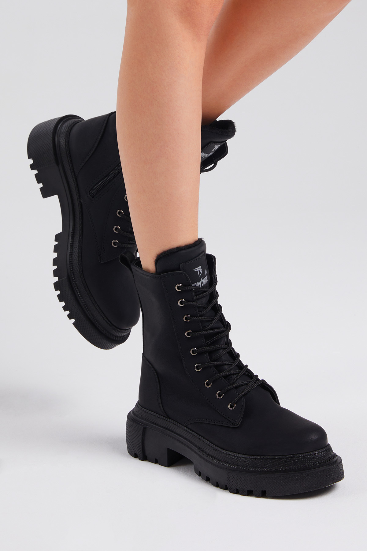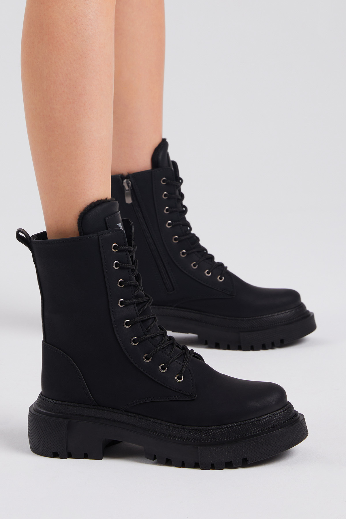 Kadın Siyah Mat Rahat Kalıp Kalın Taban Bağcıklı ve Fermuarlı Bot Kadın Siyah Mat Rahat Kalıp Kalın Taban Bağcıklı ve Fermuarlı Bot TBER170 40