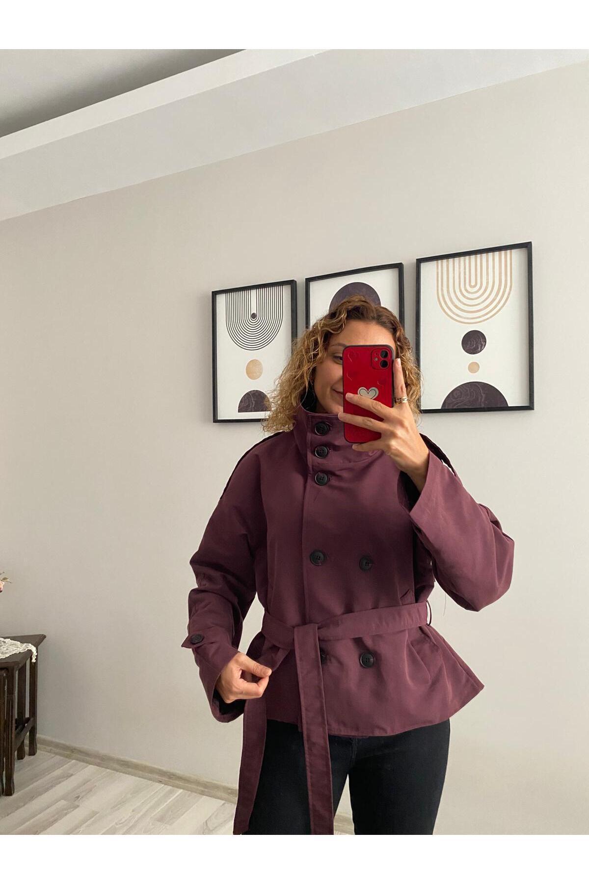 Dik Yaka Ve Ceket Yaka Mürdüm Premium Trençkot Ceket Dik Yaka Ve Ceket Yaka Mürdüm Premium Trençkot Ceket 580510 L