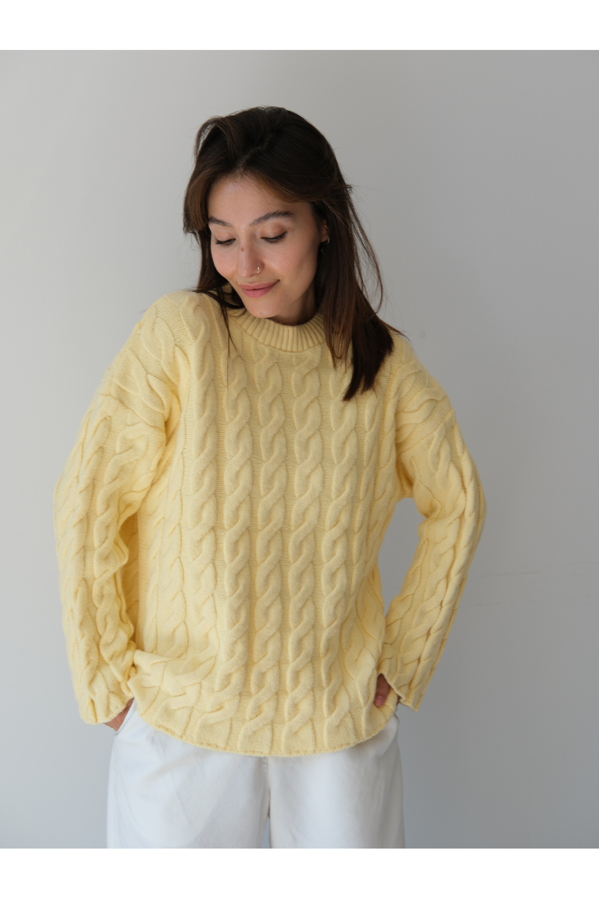 Una Fiaba-Sarı Oversize Kadın Bisiklet Yaka Yumuşak Dokulu Baklava Desen Triko Kazak Una Fiaba-Sarı Oversize Kadın Bisiklet Yaka Yumuşak Dokulu Baklava Desen Triko Kazak 252513 L