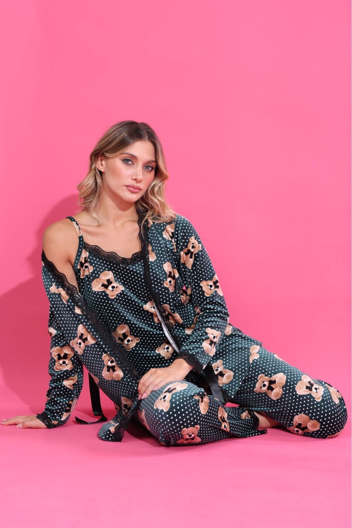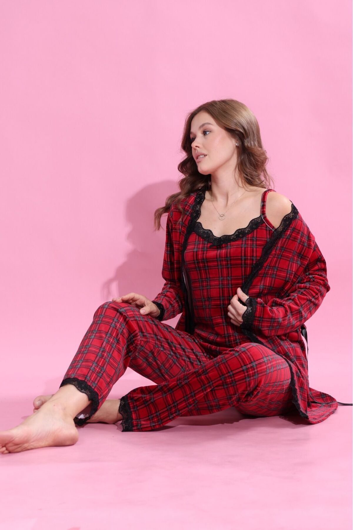 Kadın 3 lü Kadife Sabahlıklı Pijama Takımı Çeyiz Set Kadın 3 lü Kadife Sabahlıklı Pijama Takımı Çeyiz Set GN-2615 2XL