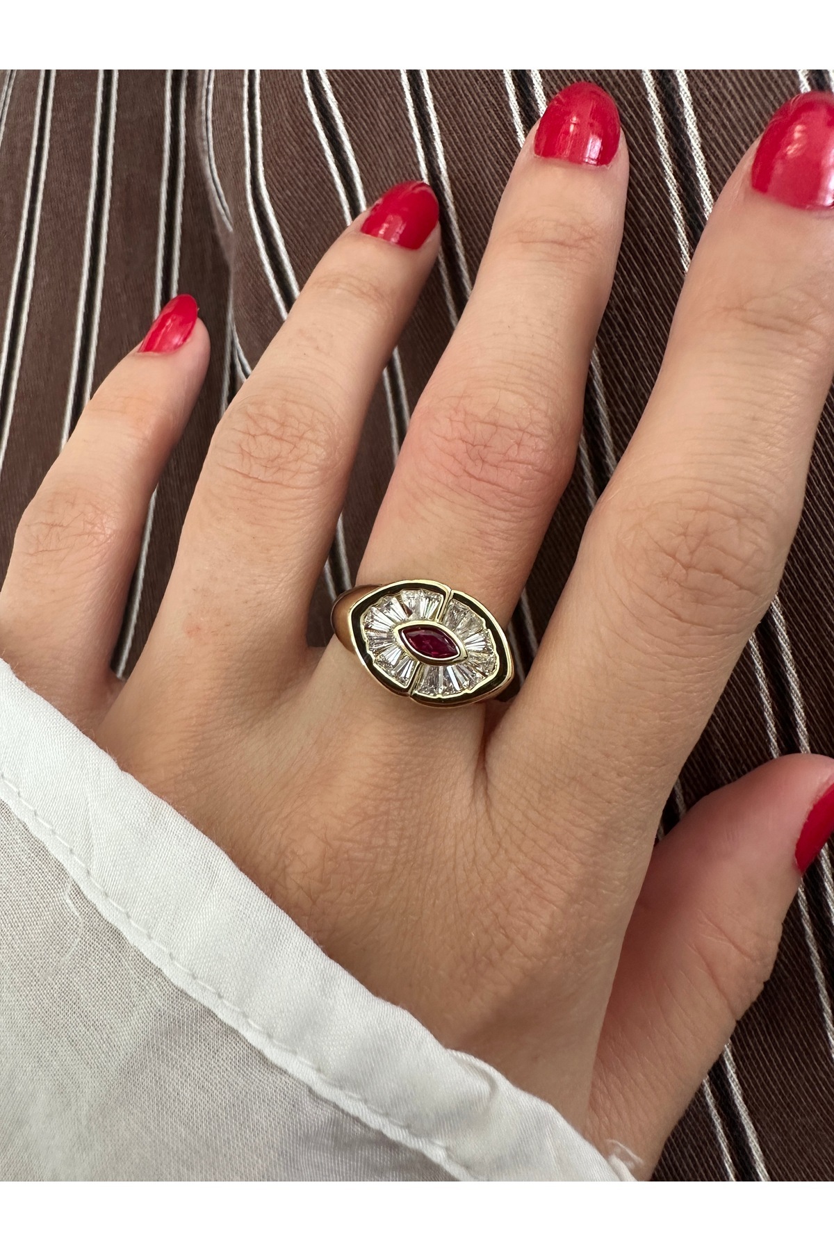 Baget Taşlı Fuşya Göz Yüzük Baget Taşlı Fuşya Göz Yüzük RB1287 تک سایز