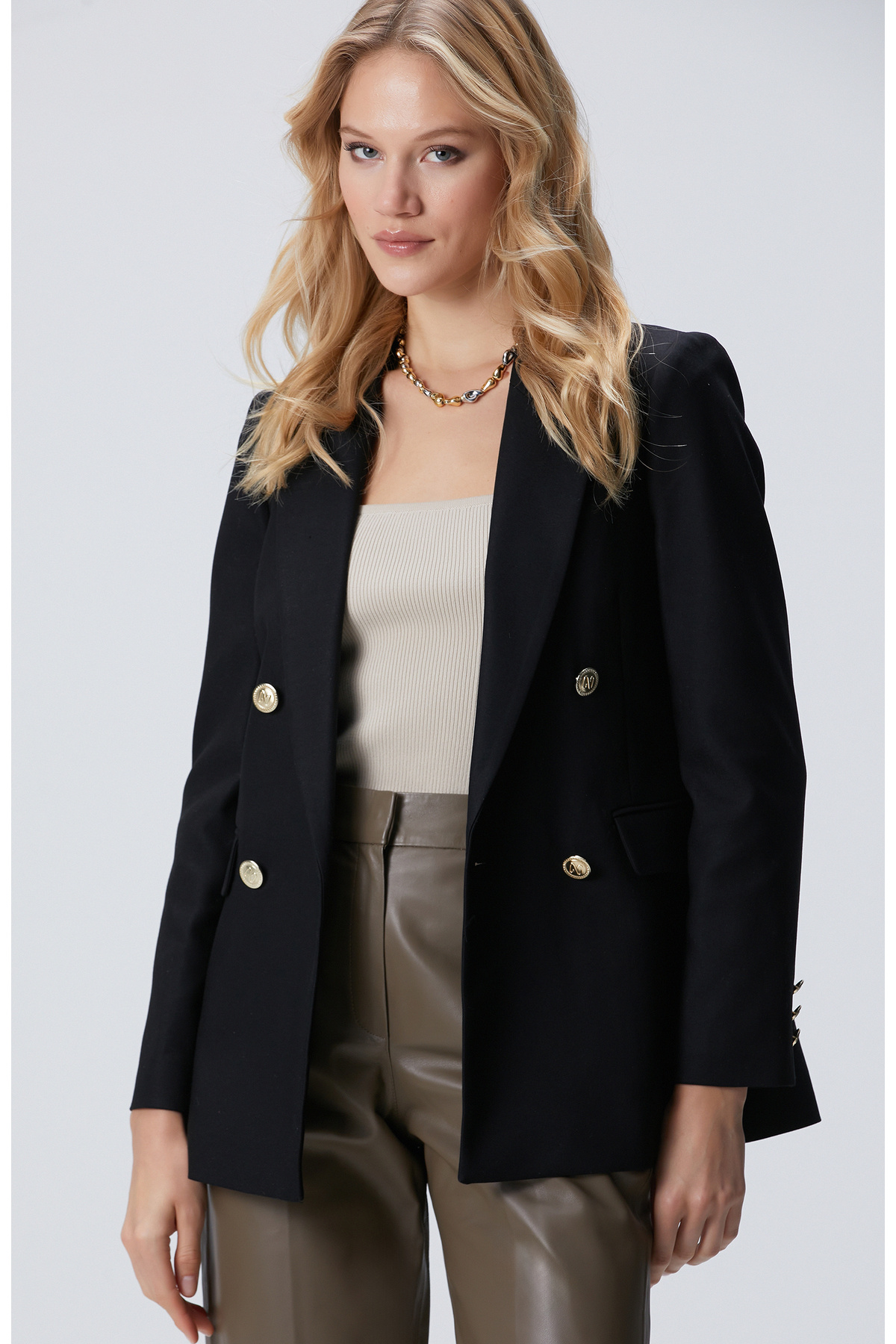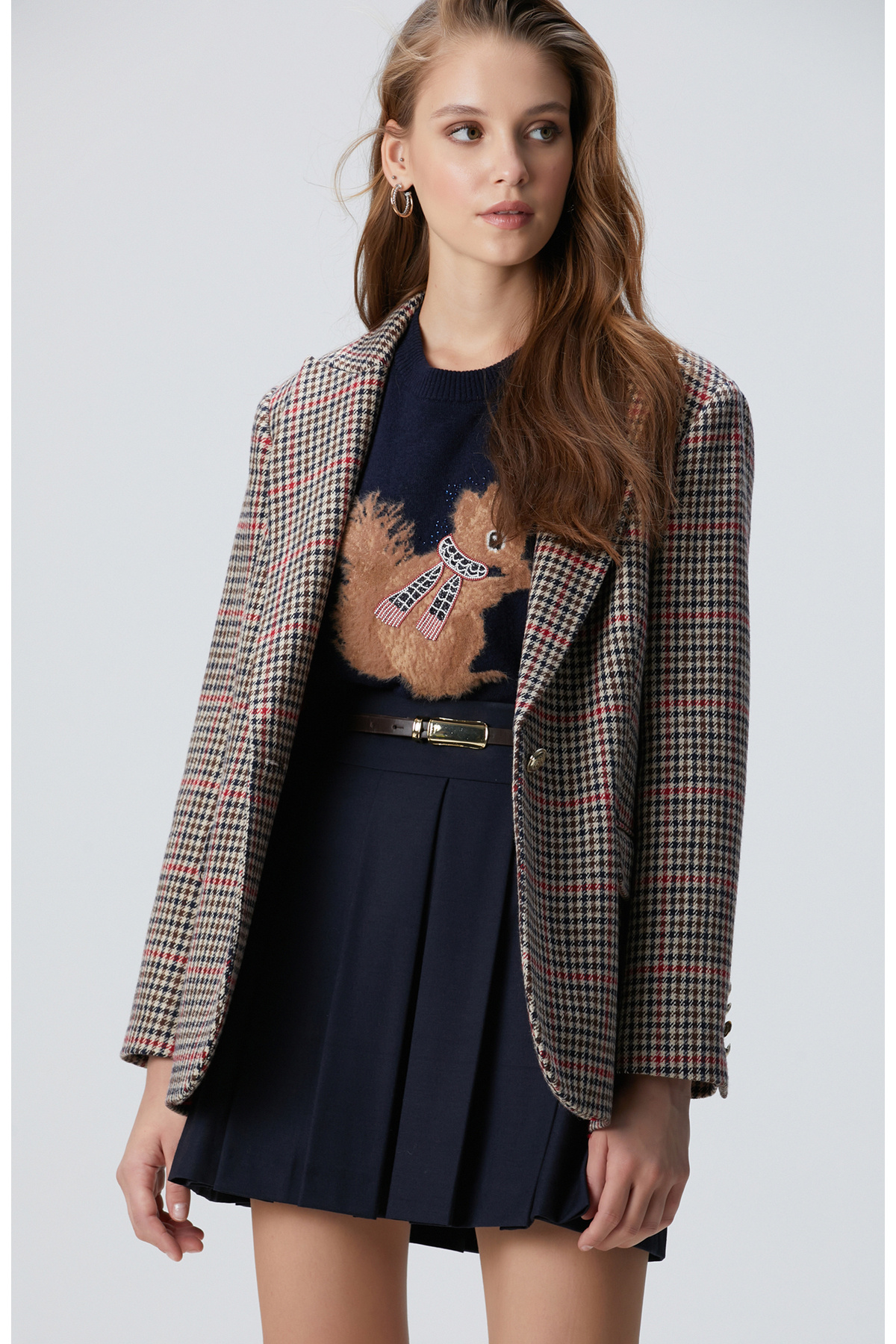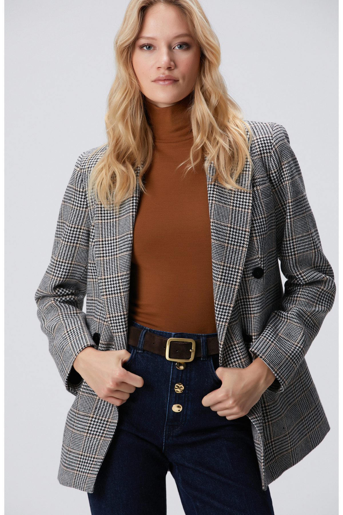 Lacivert Kahverengi Kadın Kazayağı Yün Karışımlı Ceket Lacivert Kahverengi Kadın Kazayağı Yün Karışımlı Ceket 1096367 44