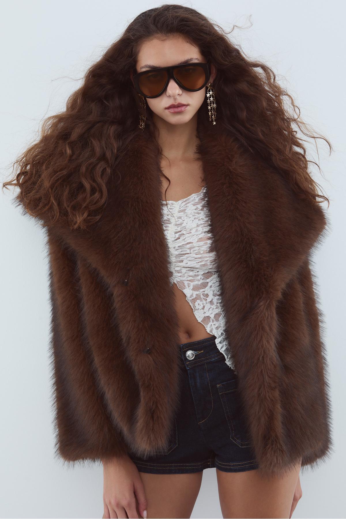 Kürk efektli kruvaze ceket Kürk efektli kruvaze ceket 08630837 XL