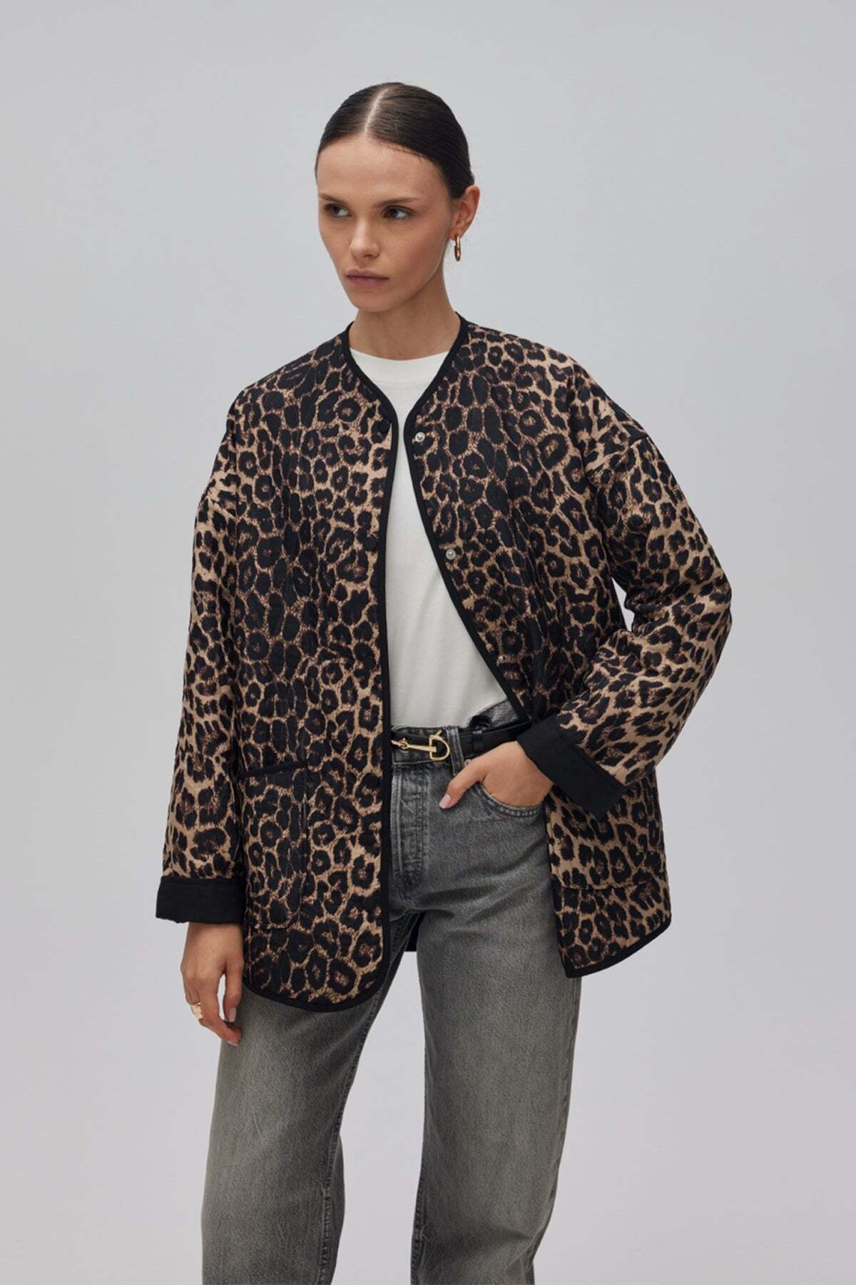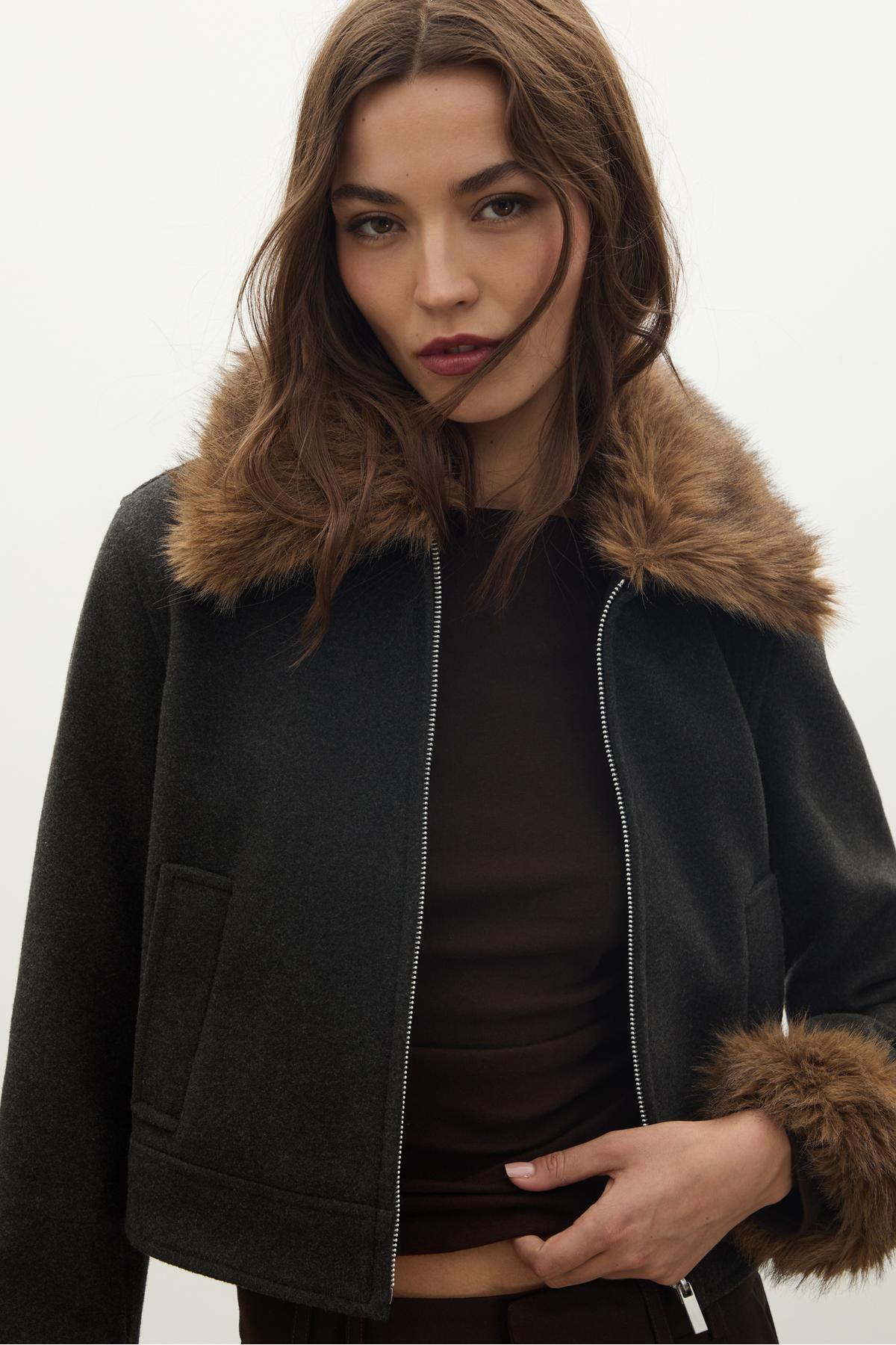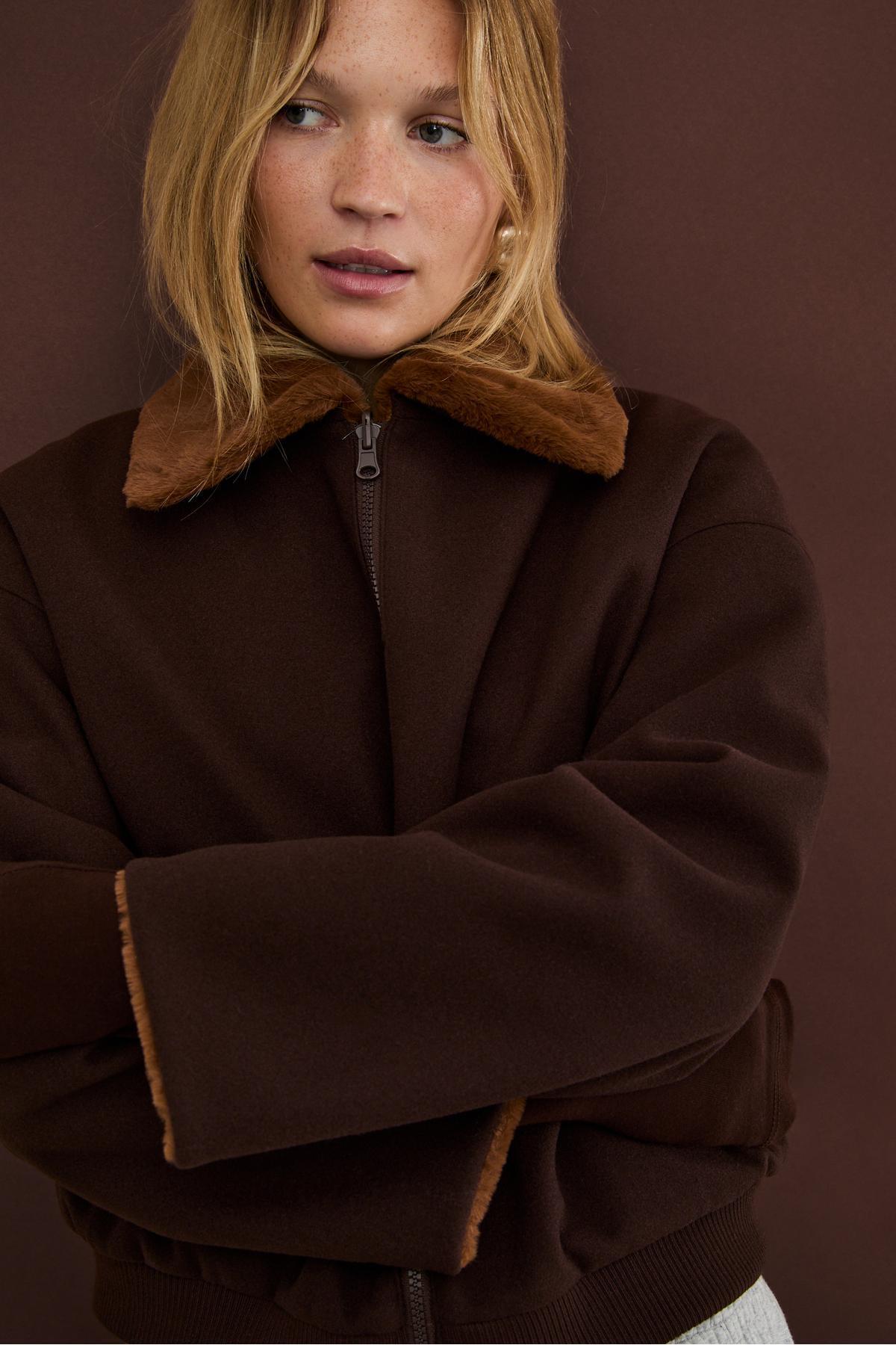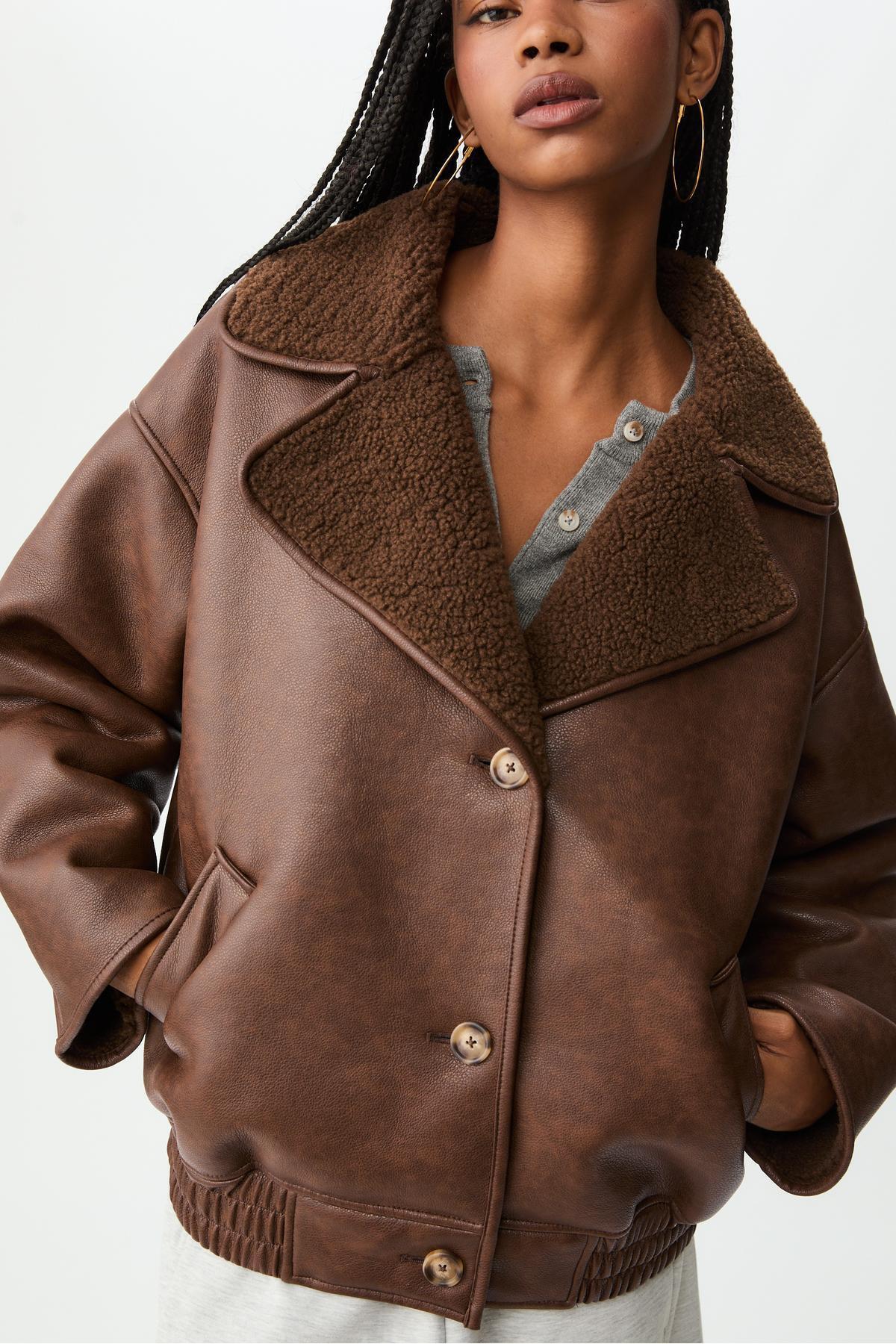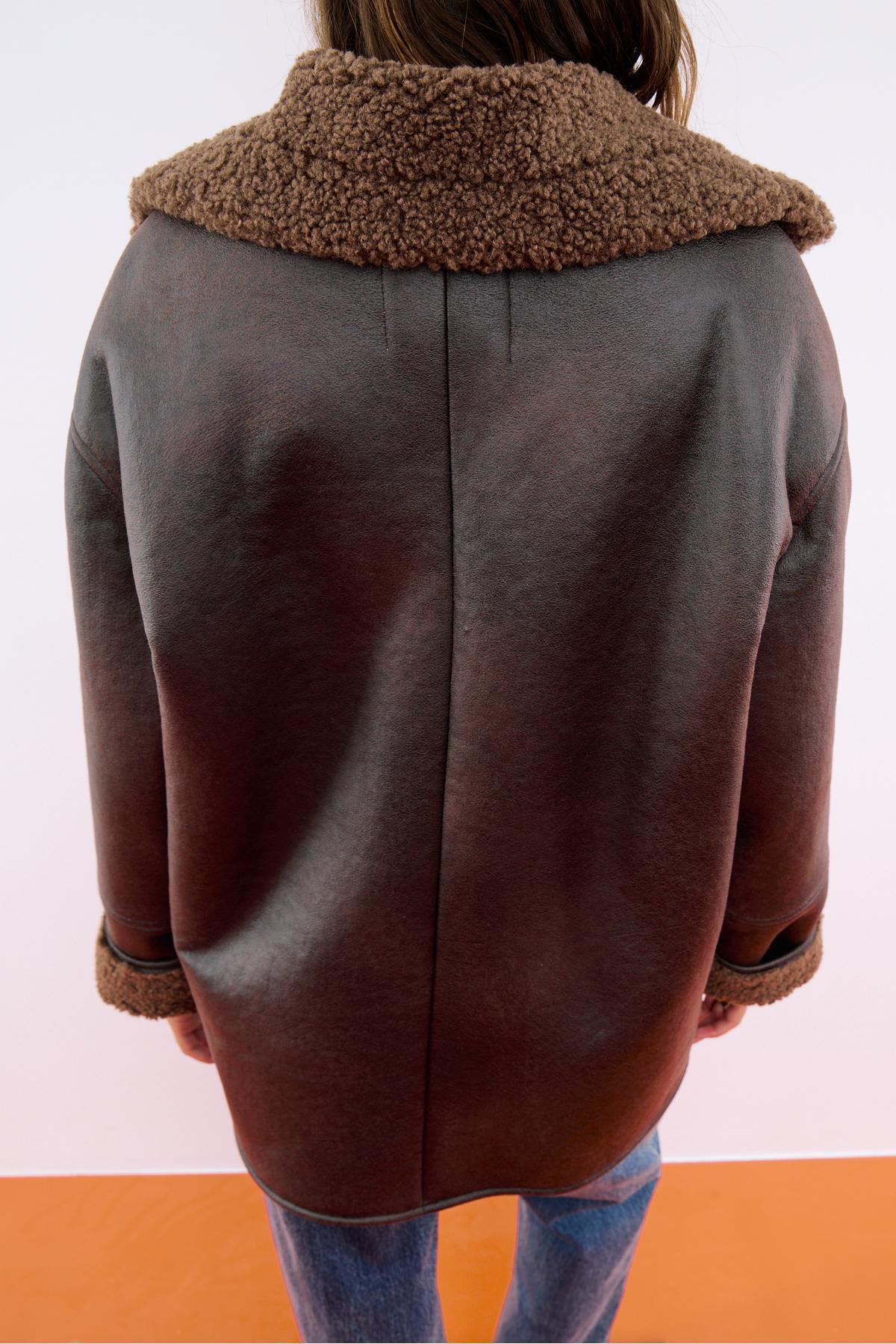 Oversize içi kürklü düğmeli ceket Oversize içi kürklü düğmeli ceket 08612473 XL