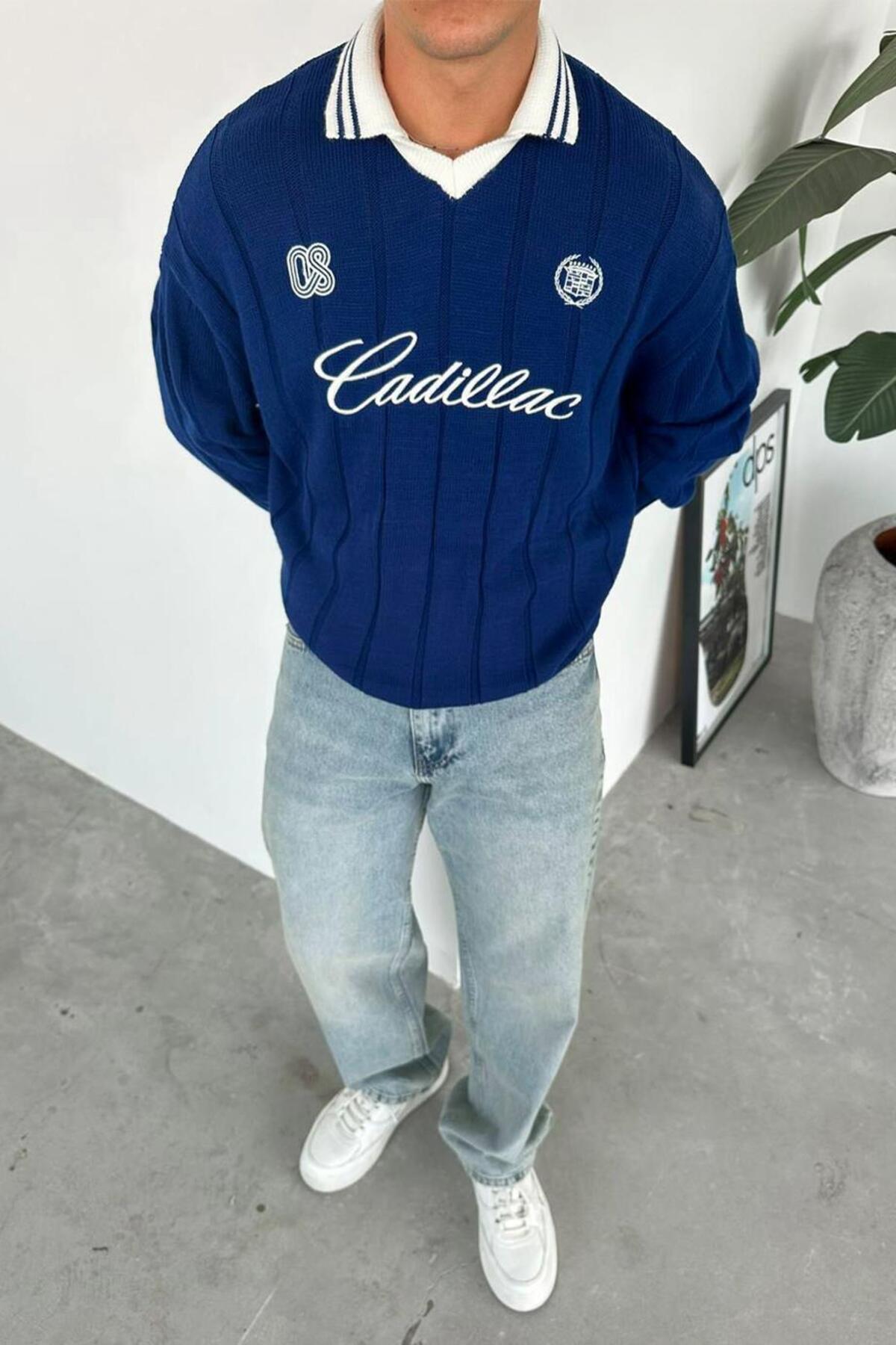 Lacivert Nakış Detay Oversize Polo Yaka Kazak Lacivert Nakış Detay Oversize Polo Yaka Kazak HF005-PM-K XL