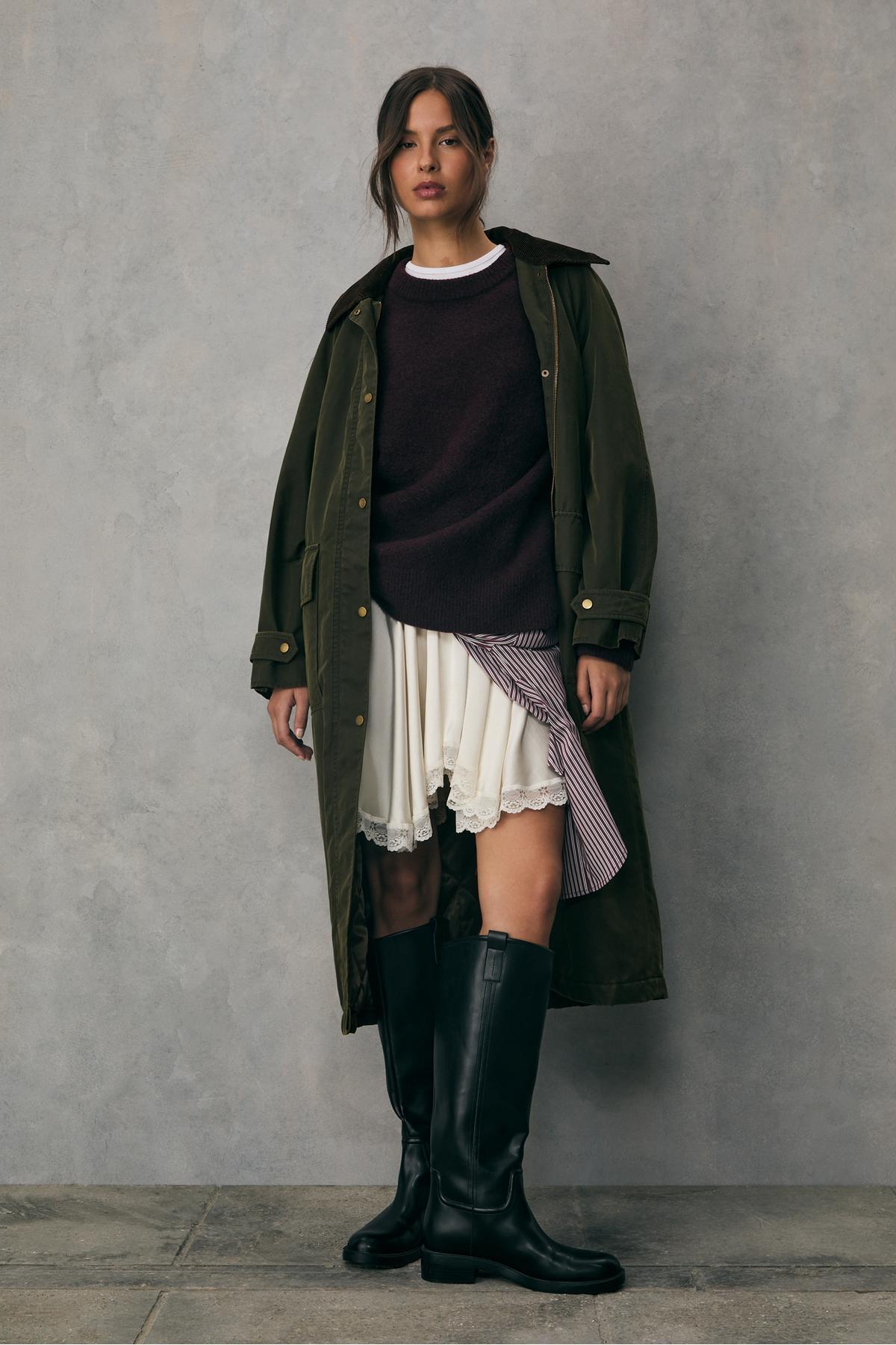 Mumlu görünümlü çıkarılabilir kapüşonlu uzun parka Mumlu görünümlü çıkarılabilir kapüşonlu uzun parka 05864867 XL