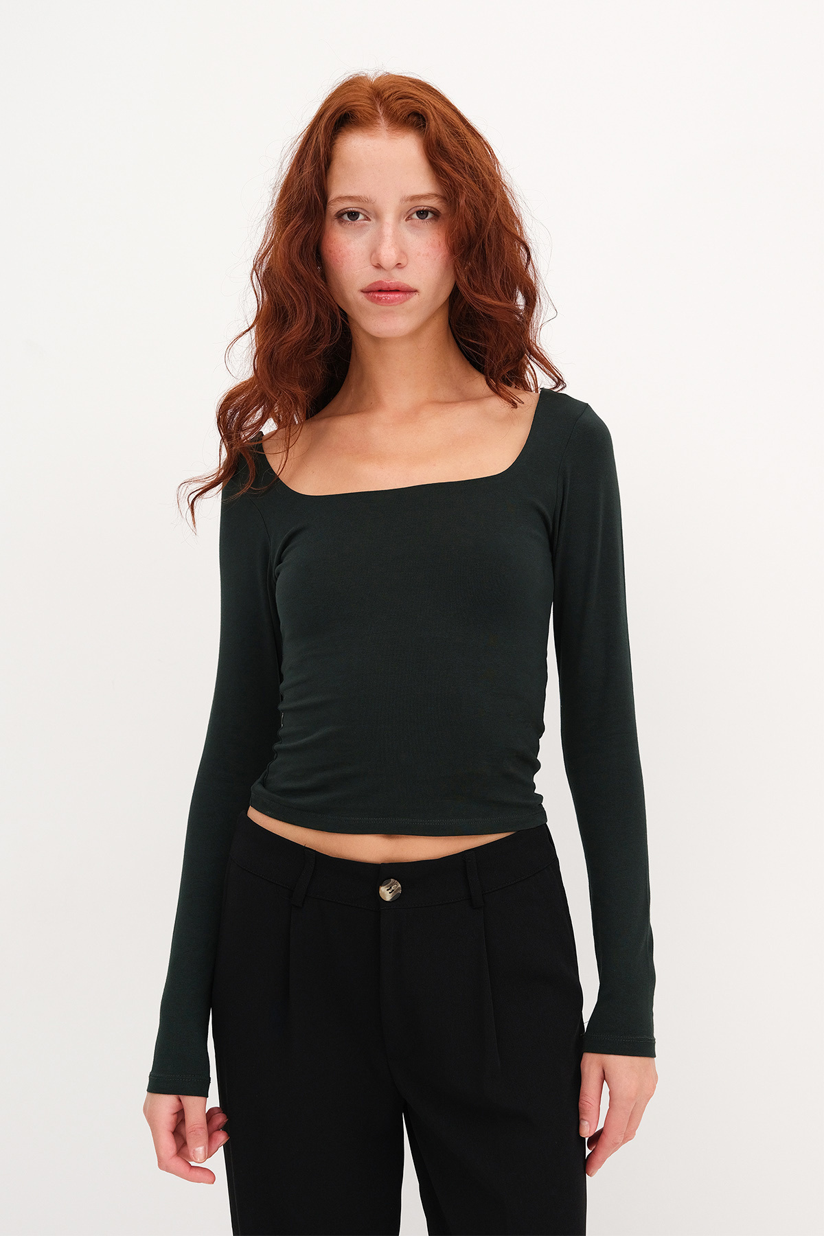 Kare Yaka Basic Bluz B1847 Kare Yaka Basic Bluz B1847 ADX-00035707 L