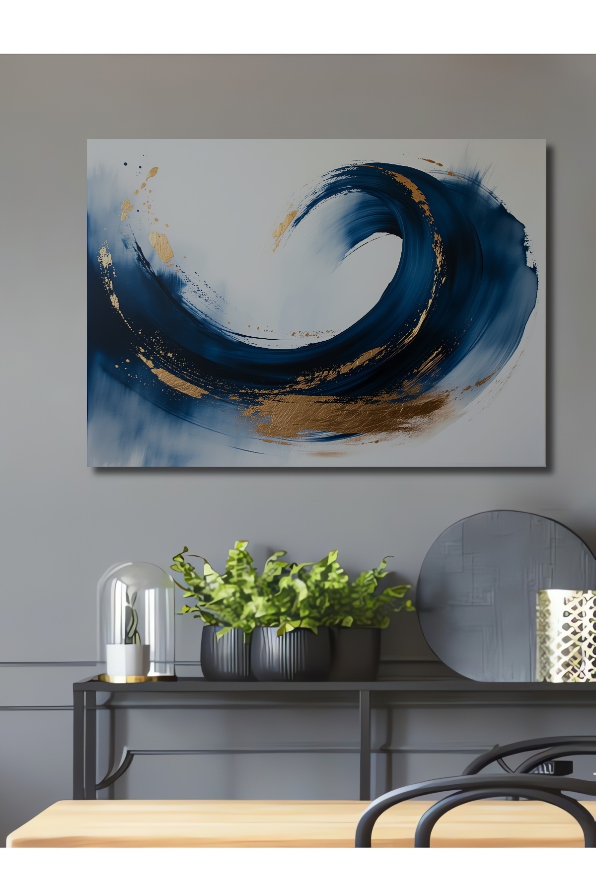 Çerçeve Görünümlü Lacivert Altın Dokunuşlu Soyut Yağlı Boya Görünümlü Ahşap Ofis Kare Tablo Çerçeve Görünümlü Lacivert Altın Dokunuşlu Soyut Yağlı Boya Görünümlü Ahşap Ofis Kare Tablo hknsdtb_4279_BT 70 x 50