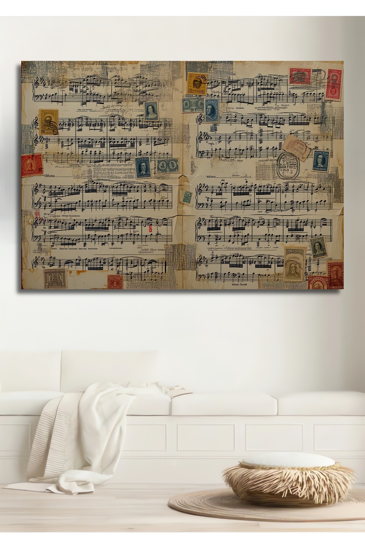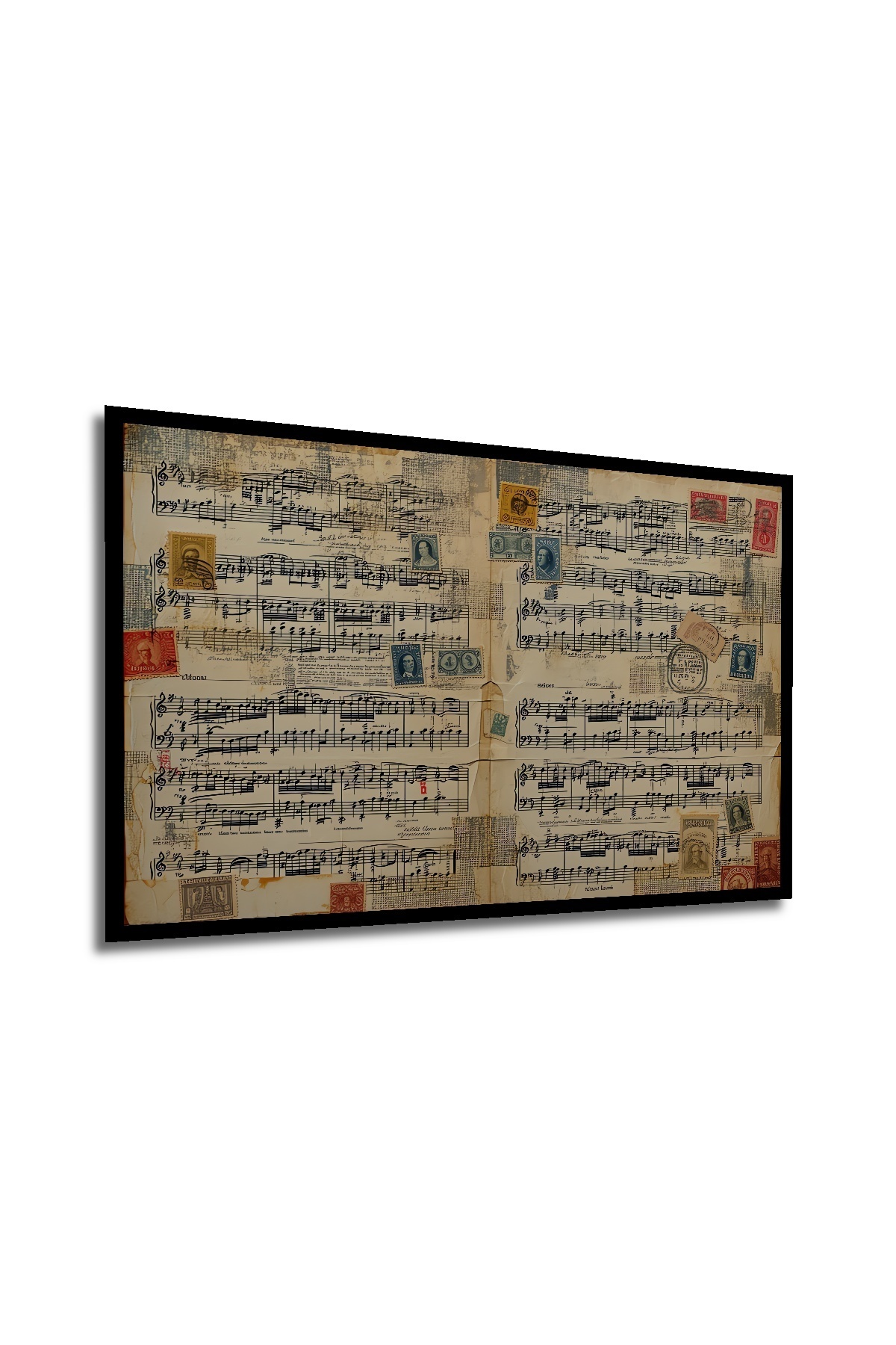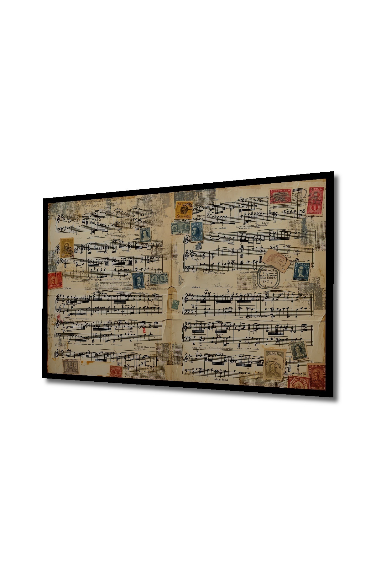 Çerçeve Görünümlü Nostaljik Müzik Notaları ve Pullar Yağlı Boya Görünümlü Ahşap Ofis Kare Tablo Çerçeve Görünümlü Nostaljik Müzik Notaları ve Pullar Yağlı Boya Görünümlü Ahşap Ofis Kare Tablo hknsdtb_5034_BT 70 x 50