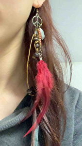 Bohem Tüy ve Barış Sembollü Uzun Küpe –El Yapımı Renkli Otantik Bohem Vintage Bijuteri Takı Bohem Tüy ve Barış Sembollü Uzun Küpe –El Yapımı Renkli Otantik Bohem Vintage Bijuteri Takı 4369840022 تک سایز