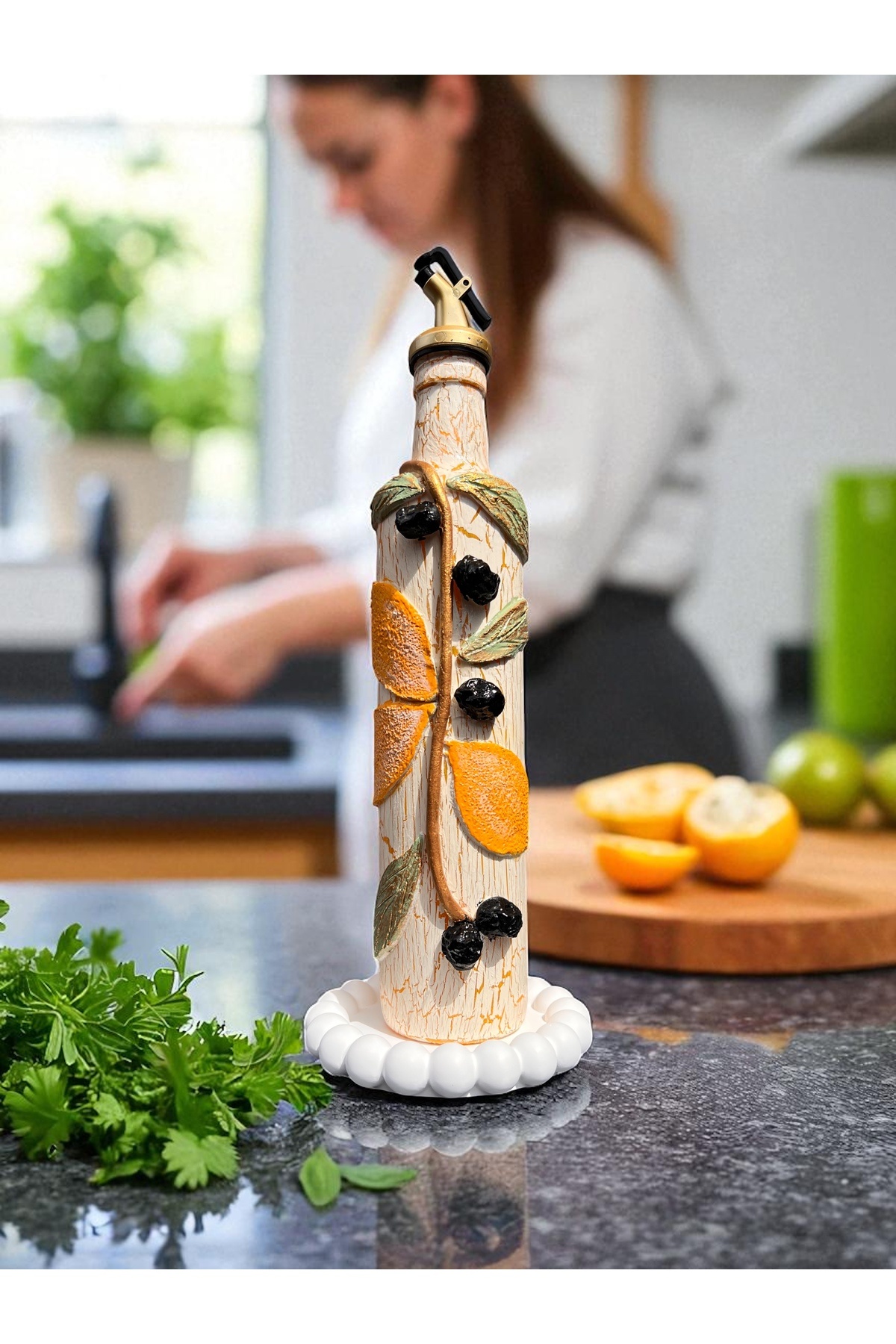 500 ML Kil Kabartma Uygulama Limon Desenli El Yapımı Zeytinyağı & Üzüm Sirke Şişeleri 500 ML Kil Kabartma Uygulama Limon Desenli El Yapımı Zeytinyağı & Üzüm Sirke Şişeleri 500ML تک سایز