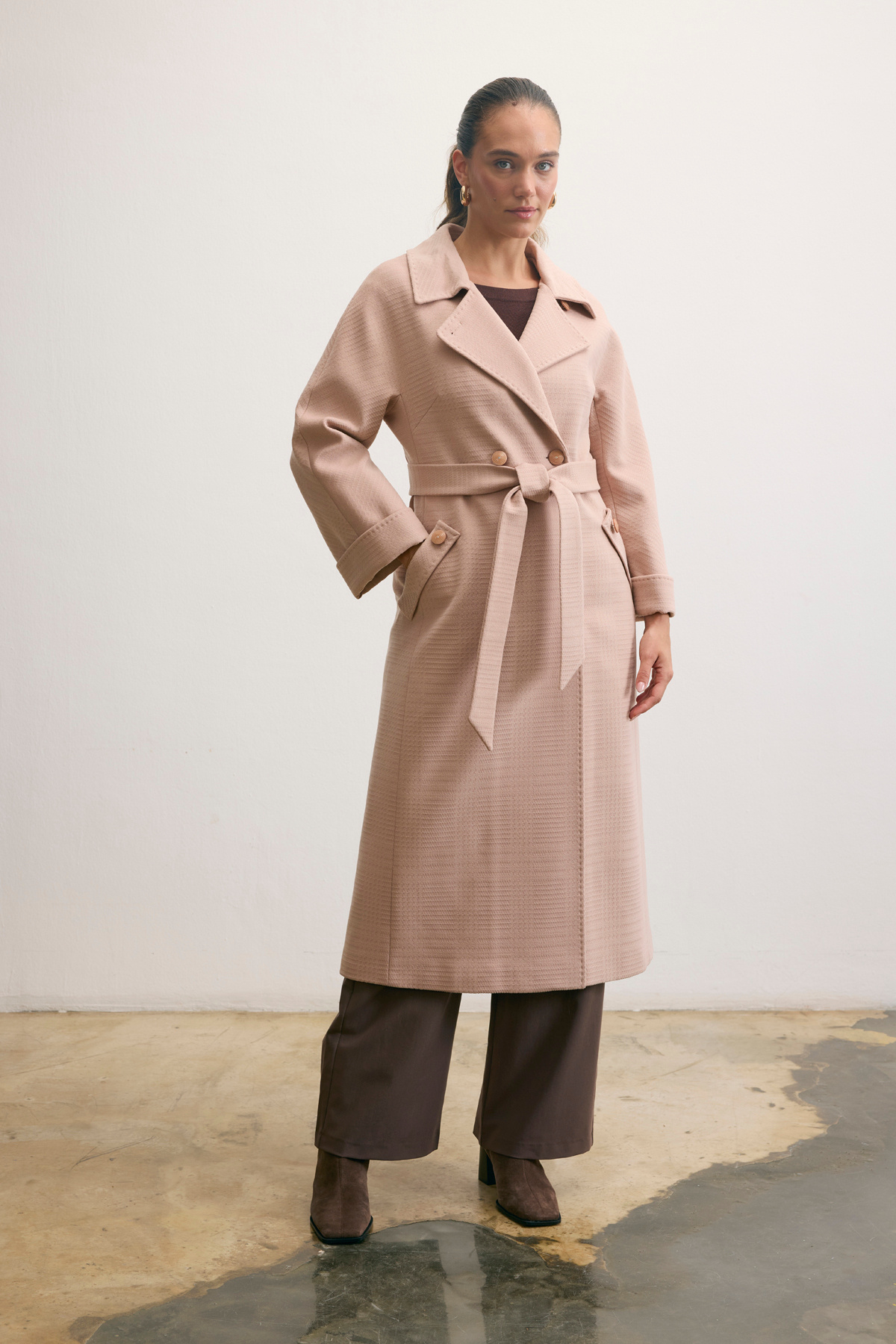 Kuşaklı Düğme Detaylı Uzun Taba Rengi Kaban Kuşaklı Düğme Detaylı Uzun Taba Rengi Kaban 32575-İR-K-N 42
