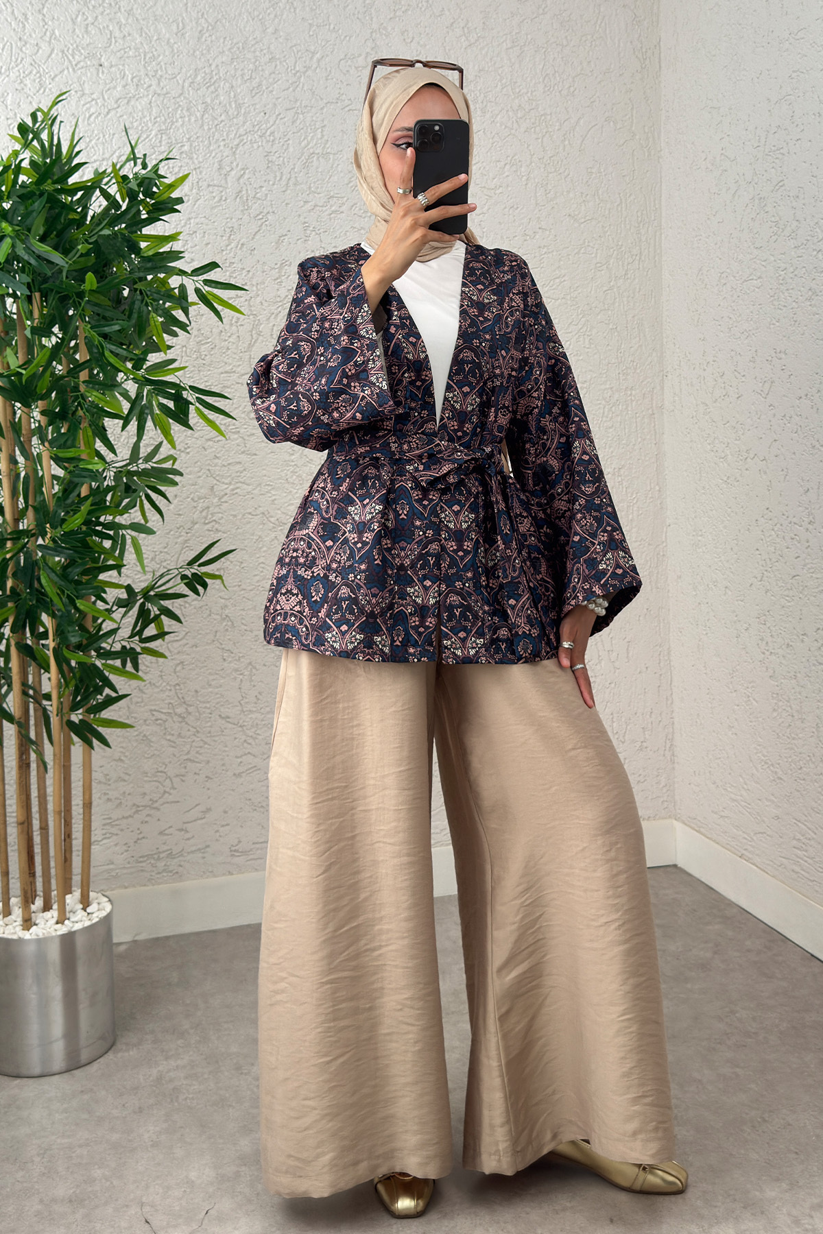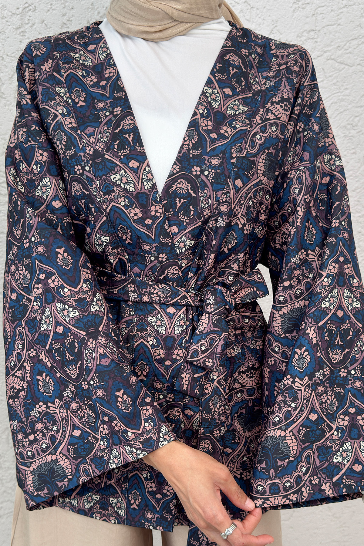 Kilim Desen Kuşaklı Kimono 0016 - LACİVERT Kilim Desen Kuşaklı Kimono 0016 - LACİVERT 496873-00164281561590 Standart