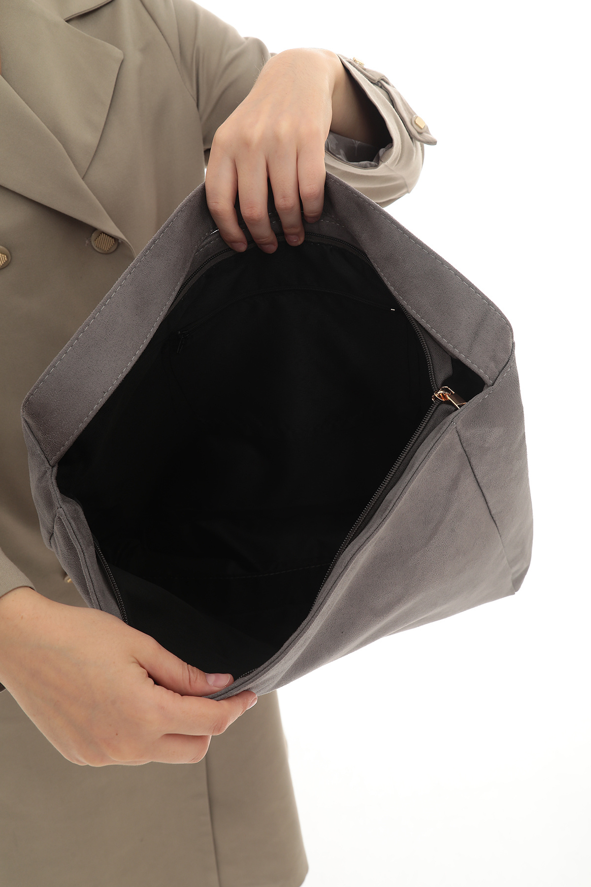Kadın Gri Süet Shopper Çanta Kadın Gri Süet Shopper Çanta SPH001 تک سایز