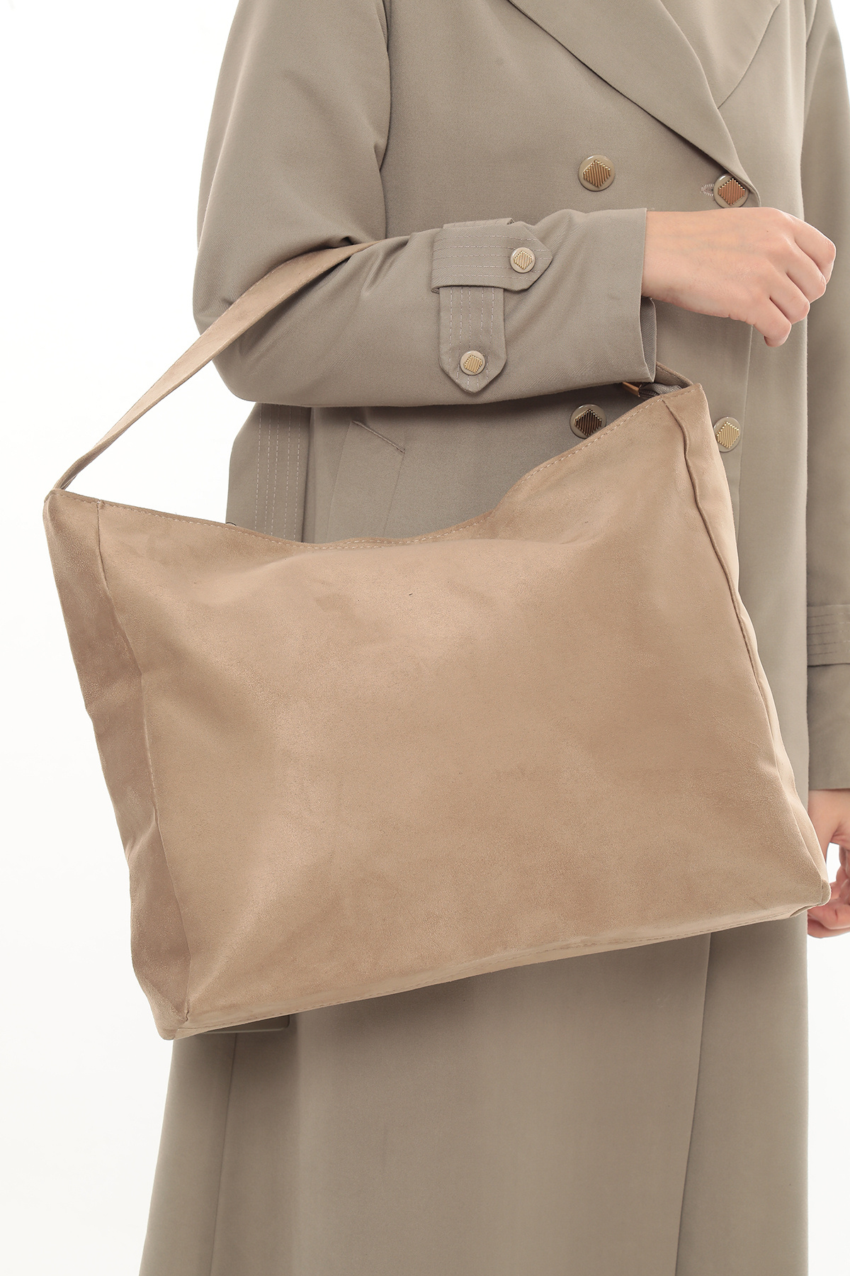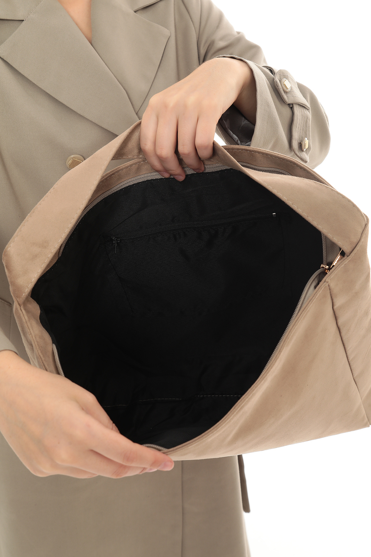 Kadın Bej Süet Shopper Çanta Kadın Bej Süet Shopper Çanta SPH001 تک سایز