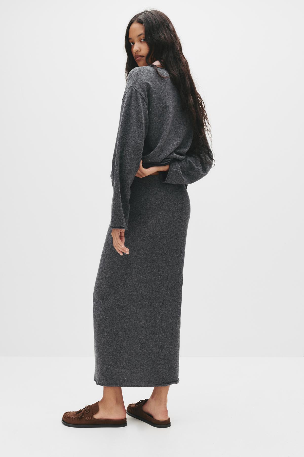 Yumuşak dokunuşlu düz midi etek Yumuşak dokunuşlu düz midi etek 07401457 XL