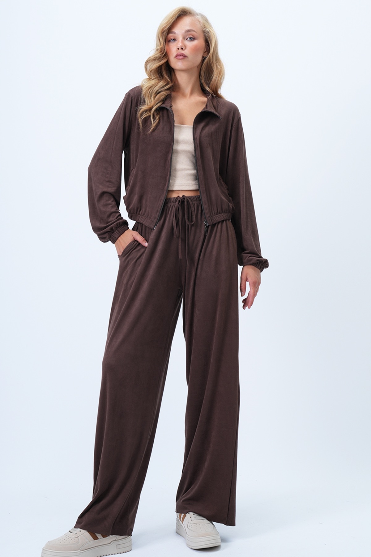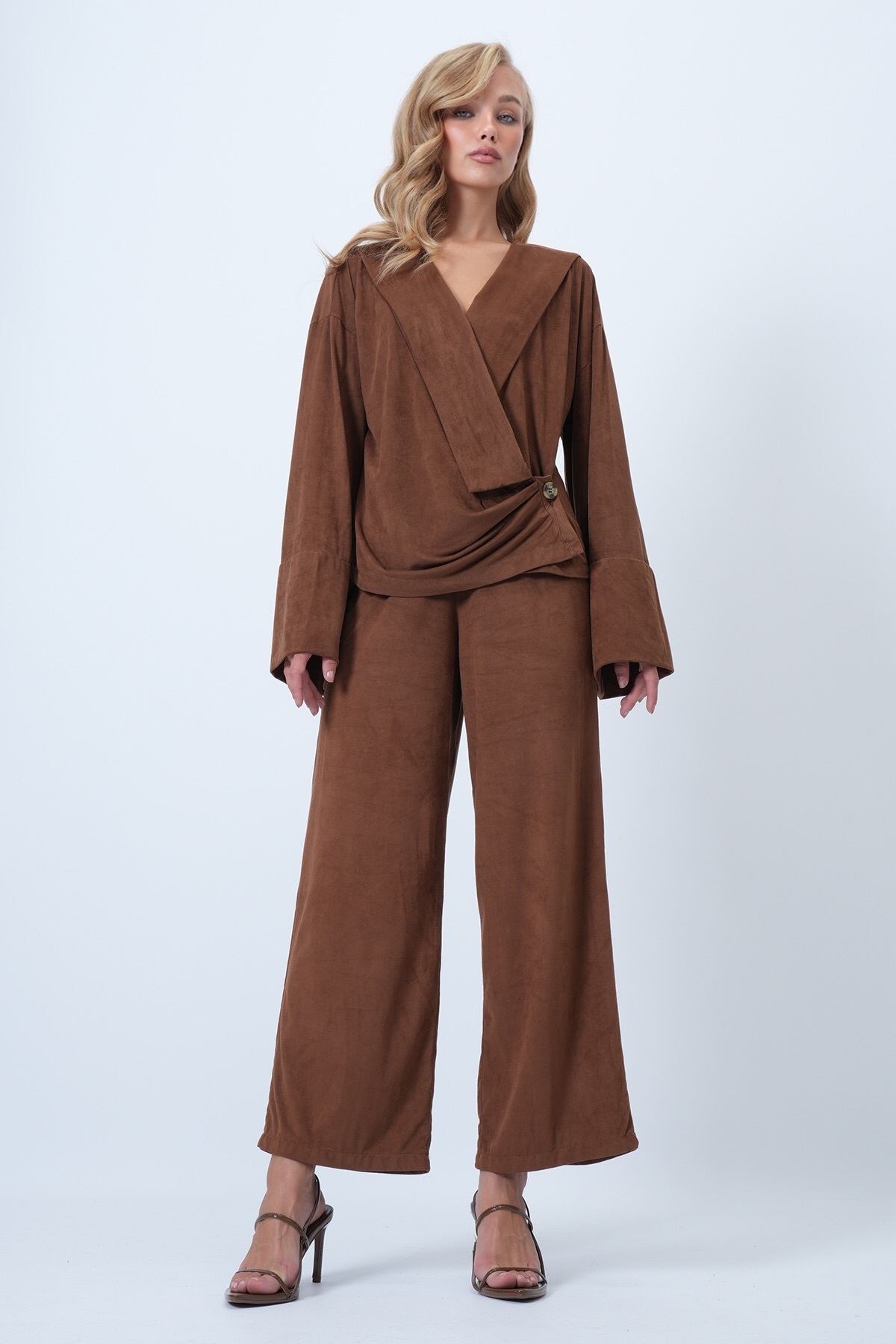 Kadın Acı Kahve Kruvaze V Yaka Geniş Kesim Tarasım Süet Bluz Ve Pantolon Takım ALC-X14584 Kadın Acı Kahve Kruvaze V Yaka Geniş Kesim Tarasım Süet Bluz Ve Pantolon Takım ALC-X14584 alcx14584 40