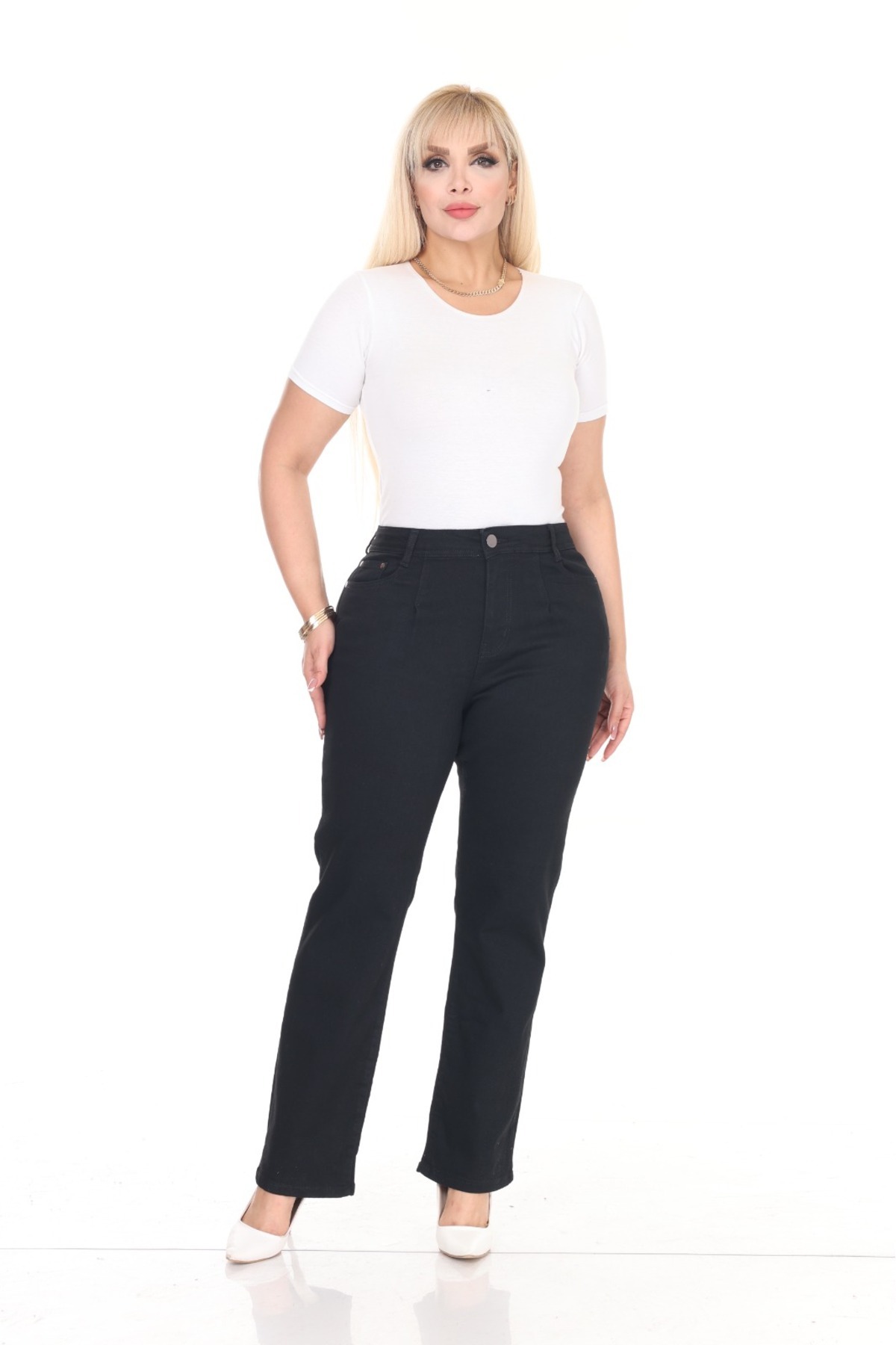 Pileli Boru Paça Yüksek Bel Rahat Kalıp Büyük Beden Yumuşak Kot Pantolon Pileli Boru Paça Yüksek Bel Rahat Kalıp Büyük Beden Yumuşak Kot Pantolon İZA421 56