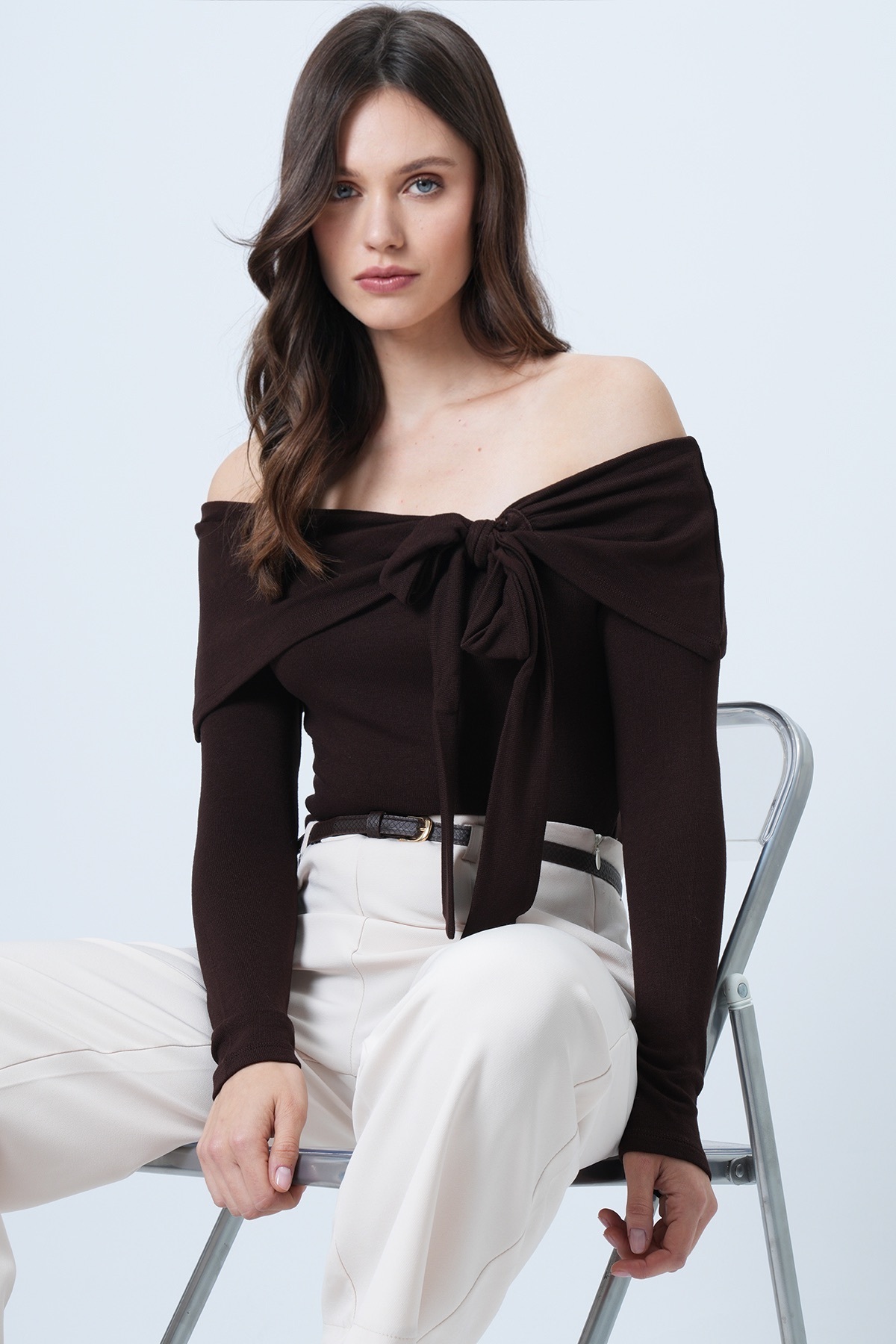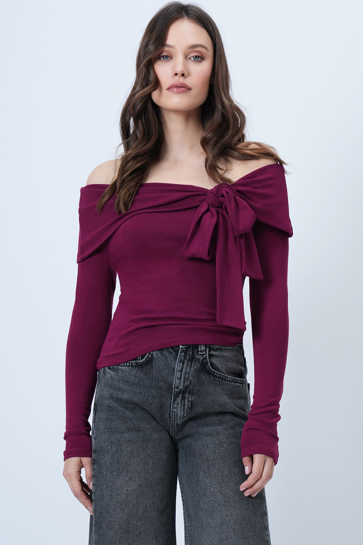 Kadın Bordo Carmen Yaka Fiyonk Bağlamalı Örme Bluz ALC-X14558 Kadın Bordo Carmen Yaka Fiyonk Bağlamalı Örme Bluz ALC-X14558 alcx14558 40