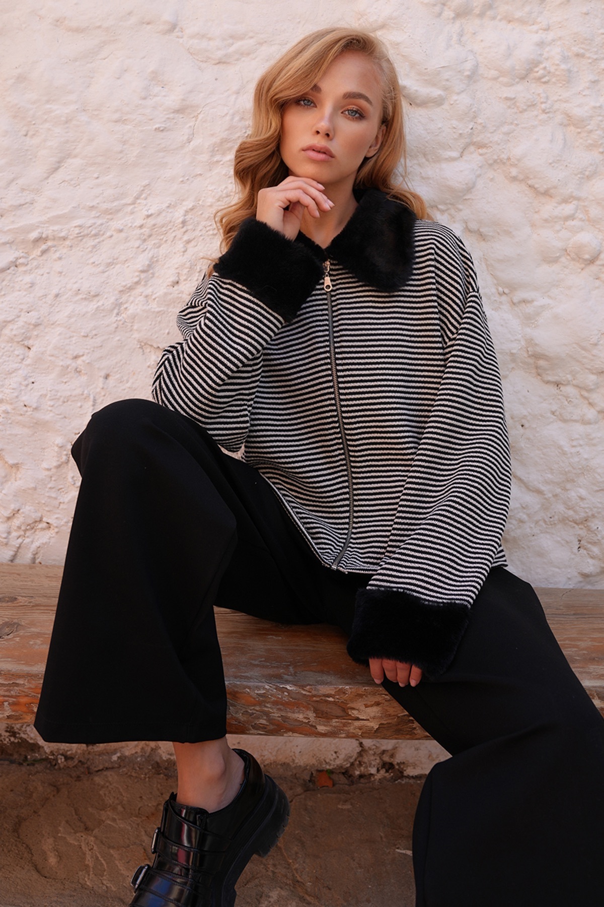 Kadın Siyah Yakası Ve Kolu Peluş Detaylı Önü Fermuarlı Triko Ceket ALC-X14544 Kadın Siyah Yakası Ve Kolu Peluş Detaylı Önü Fermuarlı Triko Ceket ALC-X14544 alcx14544 40