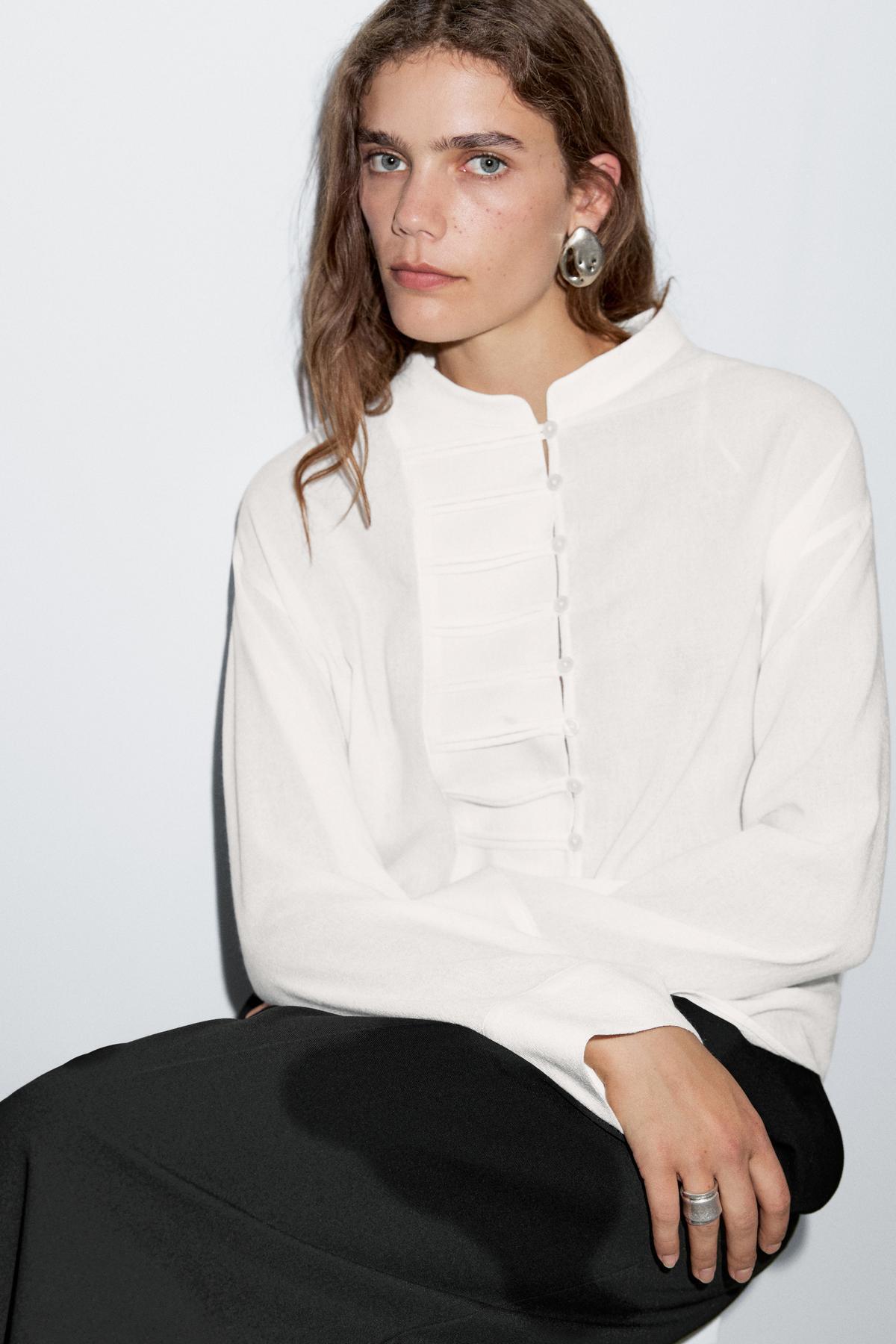 Düğme detaylı bisiklet yaka gömlek Düğme detaylı bisiklet yaka gömlek 00110779205161961 L
