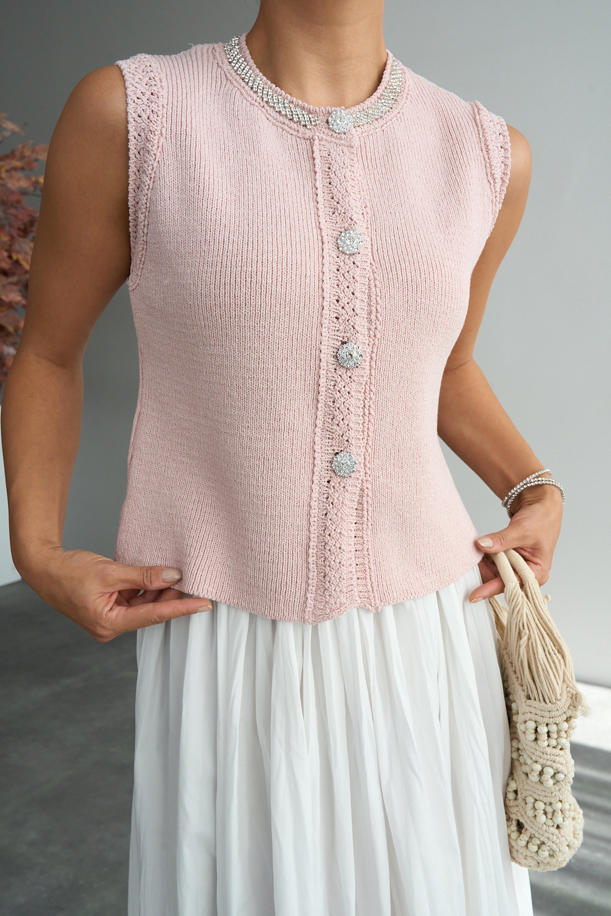 Kadın Pembe Bisiklet Yaka Gold Düğmeli Dokulu Triko Yelek ALC-X14455 Kadın Pembe Bisiklet Yaka Gold Düğmeli Dokulu Triko Yelek ALC-X14455 alcx14455 Standart