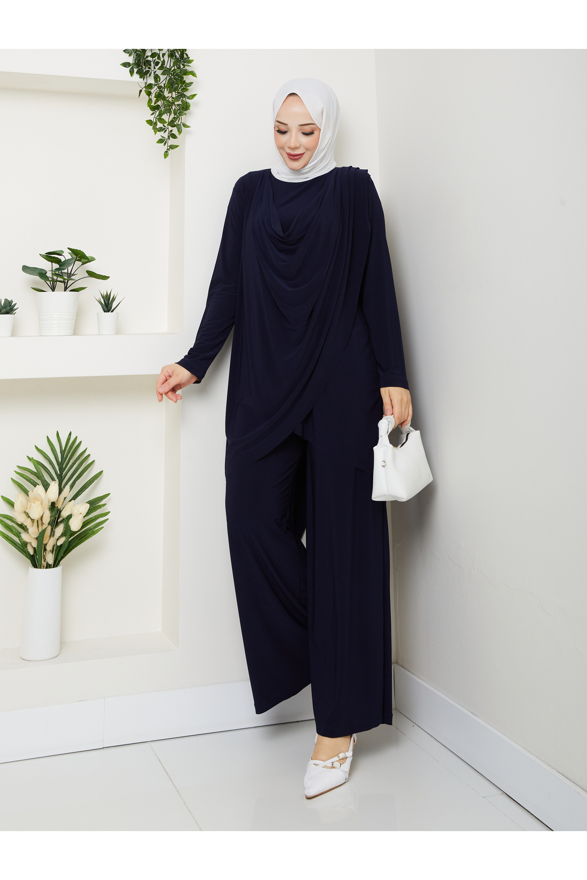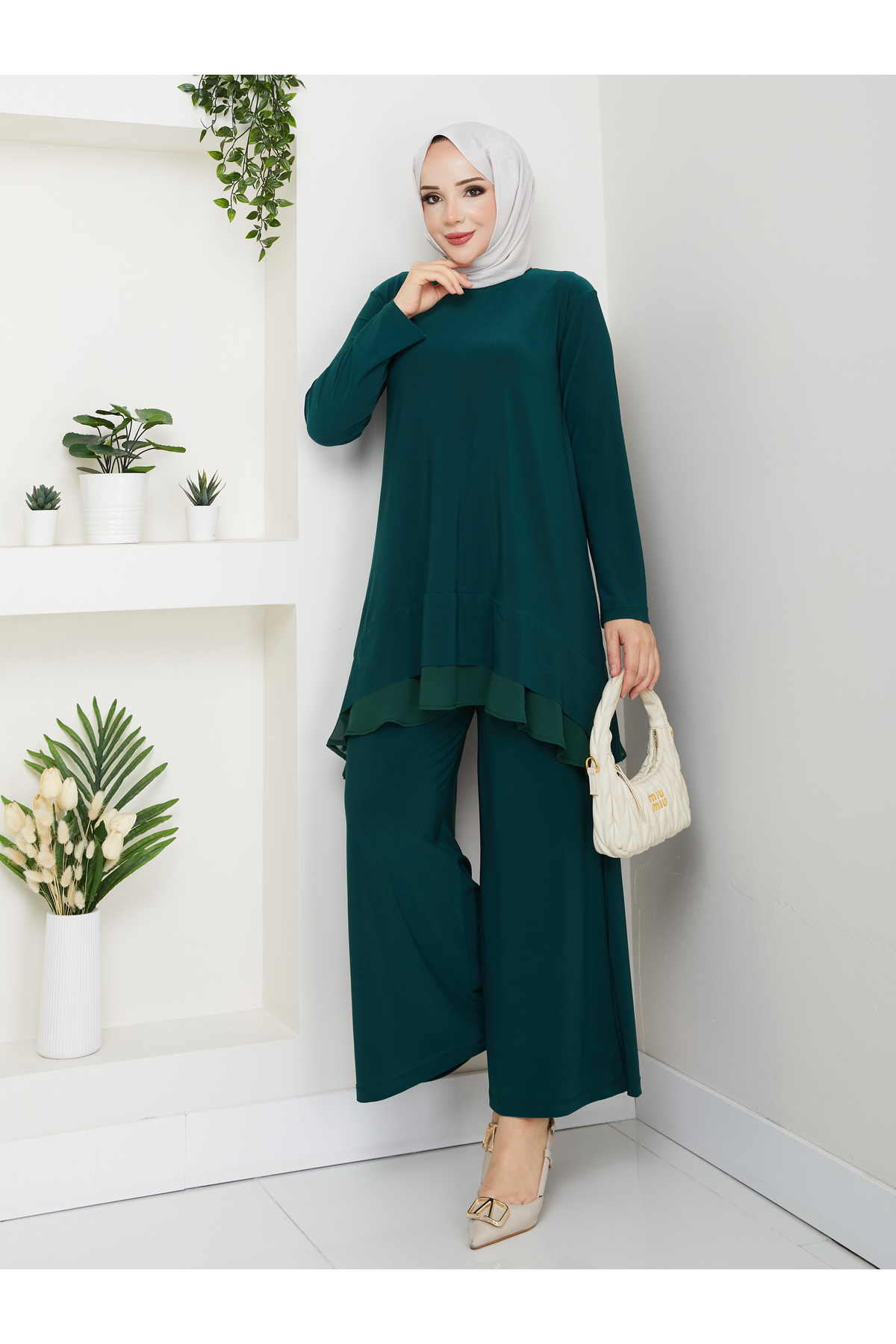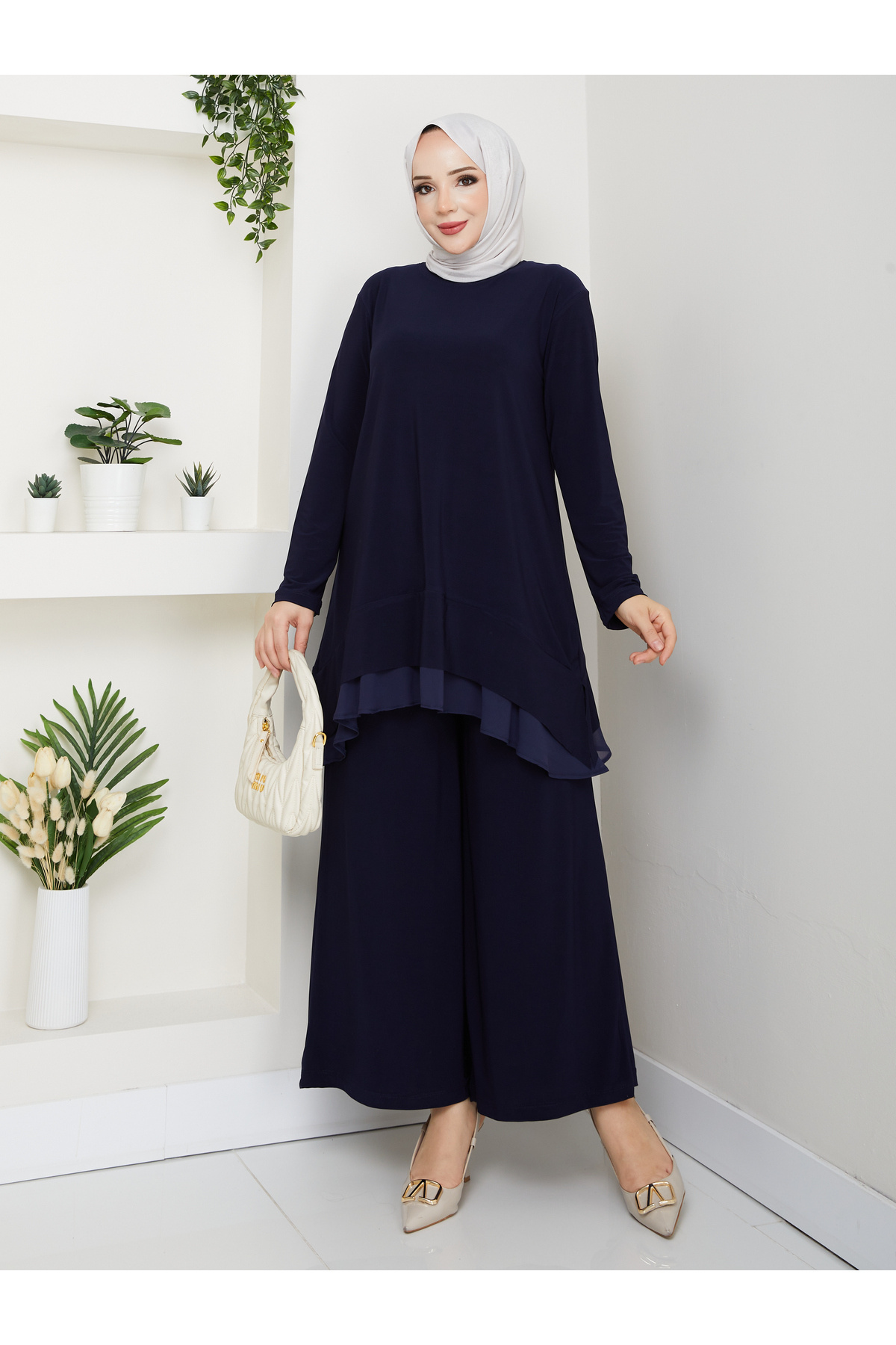 Kadın Sandy Bluzun Eteği Şifon Detaylı Bol Paça Pantolonlu Tesettür İkili Takım Kadın Sandy Bluzun Eteği Şifon Detaylı Bol Paça Pantolonlu Tesettür İkili Takım ÇİĞDEM PANTOLONLU TAKIM 48