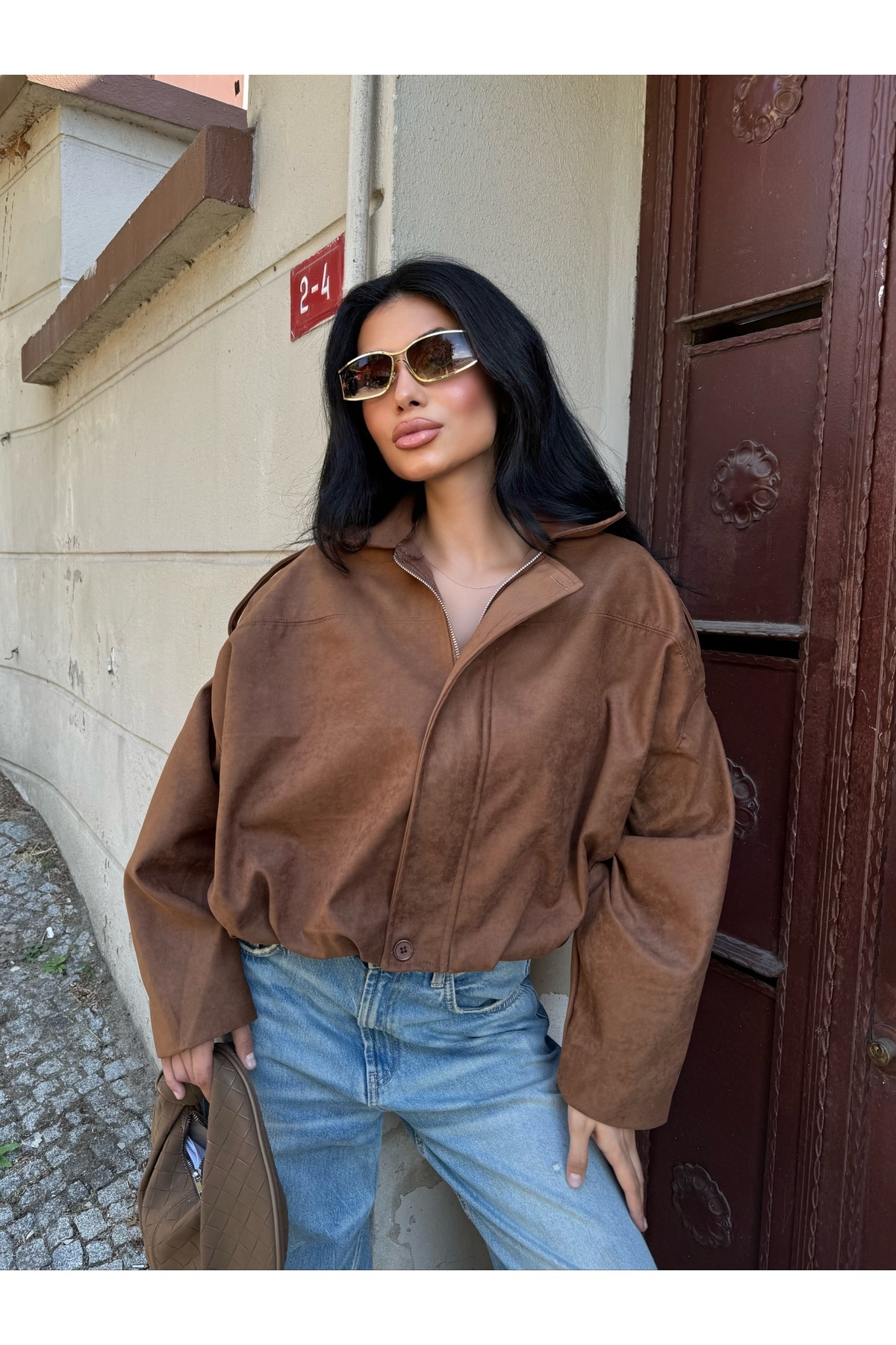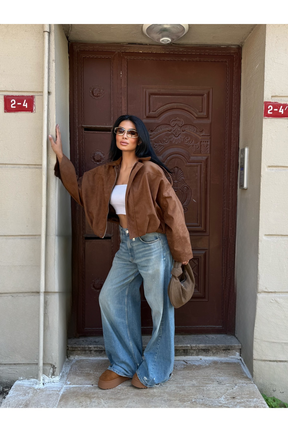 Kadın Oversize Bomber Süet Ceket Kadın Oversize Bomber Süet Ceket Laluna1120SCV Standart