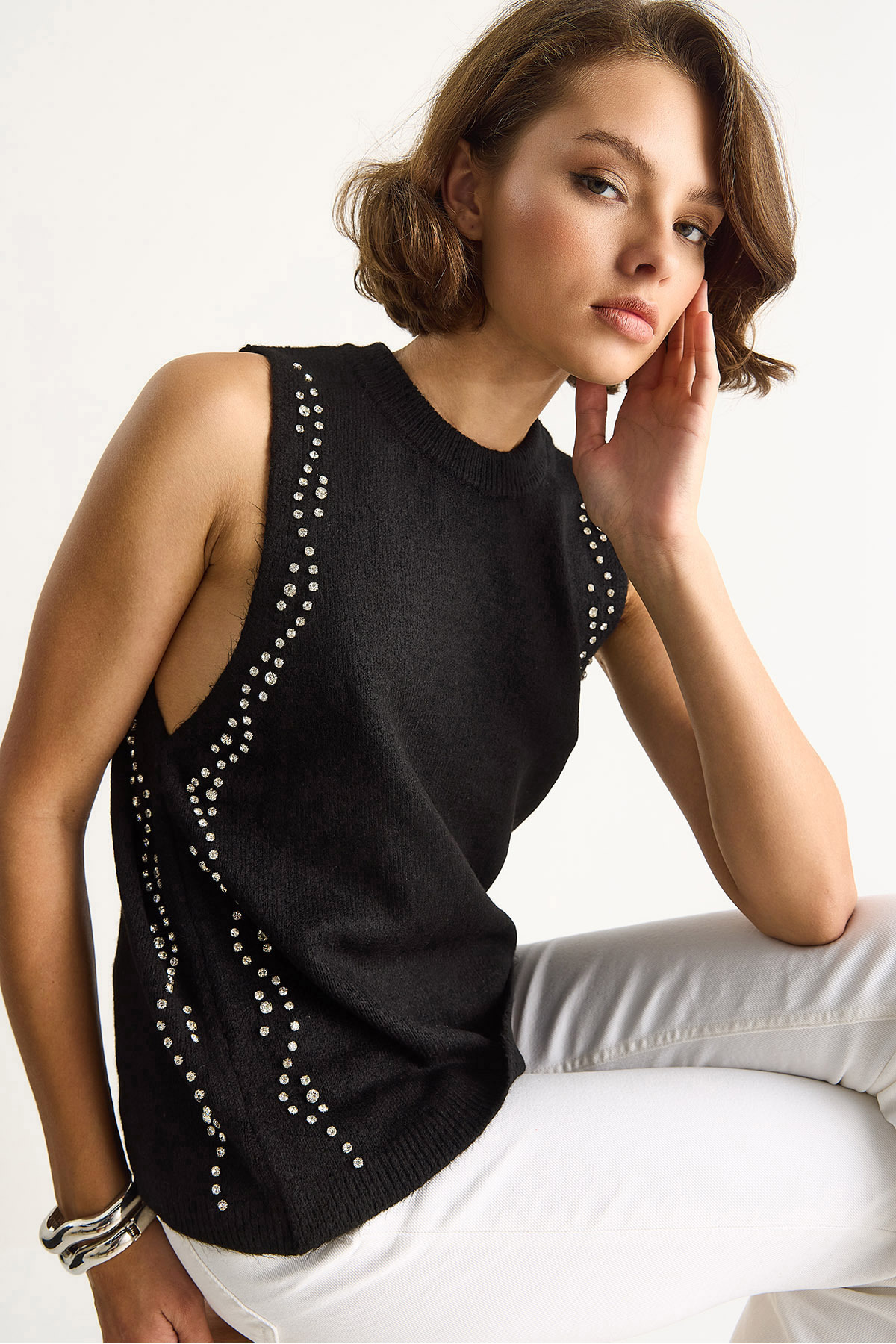 Kadın Taş Detaylı Yarım Balıkçı Yaka Triko Bluz 20247588 Kadın Taş Detaylı Yarım Balıkçı Yaka Triko Bluz 20247588 Standart