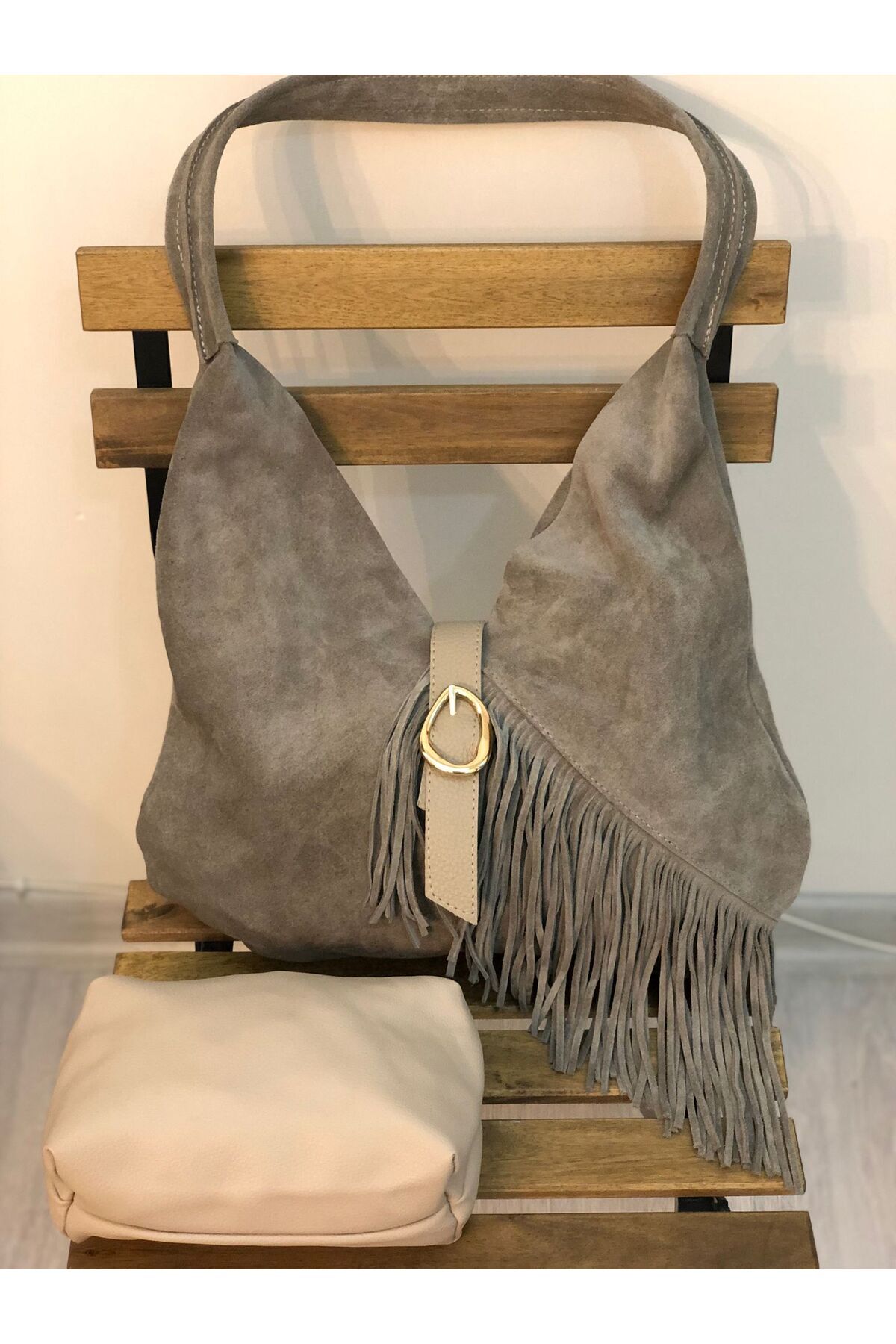 Hakiki Deri Süet Püsküllü Gerçek Deri Süet Tasarım Omuz Çantası Hakiki Deri Süet Püsküllü Gerçek Deri Süet Tasarım Omuz Çantası 00084 Standart