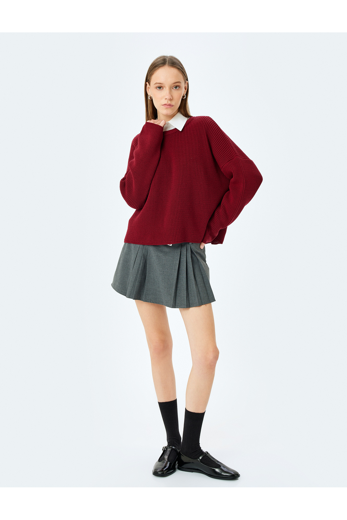 Uzun Kollu Dik Yaka Viskon Karışımlı Yarım Fermuarlı Triko Kazak Uzun Kollu Dik Yaka Viskon Karışımlı Yarım Fermuarlı Triko Kazak 6WAL90063HT L