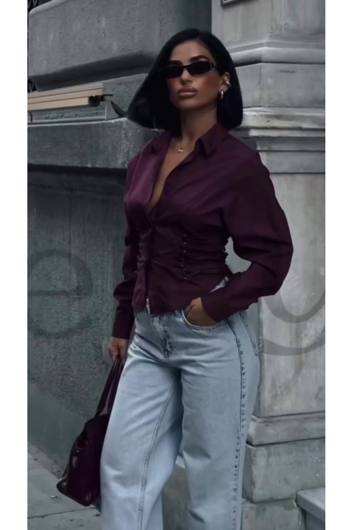 Kadın Korset ve Bağlama Detaylı Poplin Gömlek Kadın Korset ve Bağlama Detaylı Poplin Gömlek STİLSEVEN L