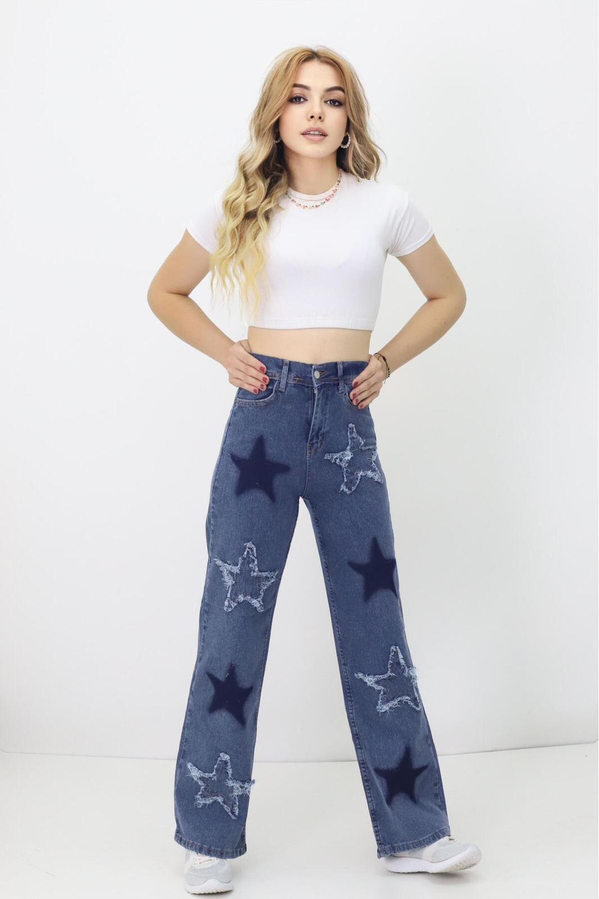 Kadın Yıldız Detaylı İspanyol Paça Kot Pantolon Kadın Yıldız Detaylı İspanyol Paça Kot Pantolon Velavois1030 44