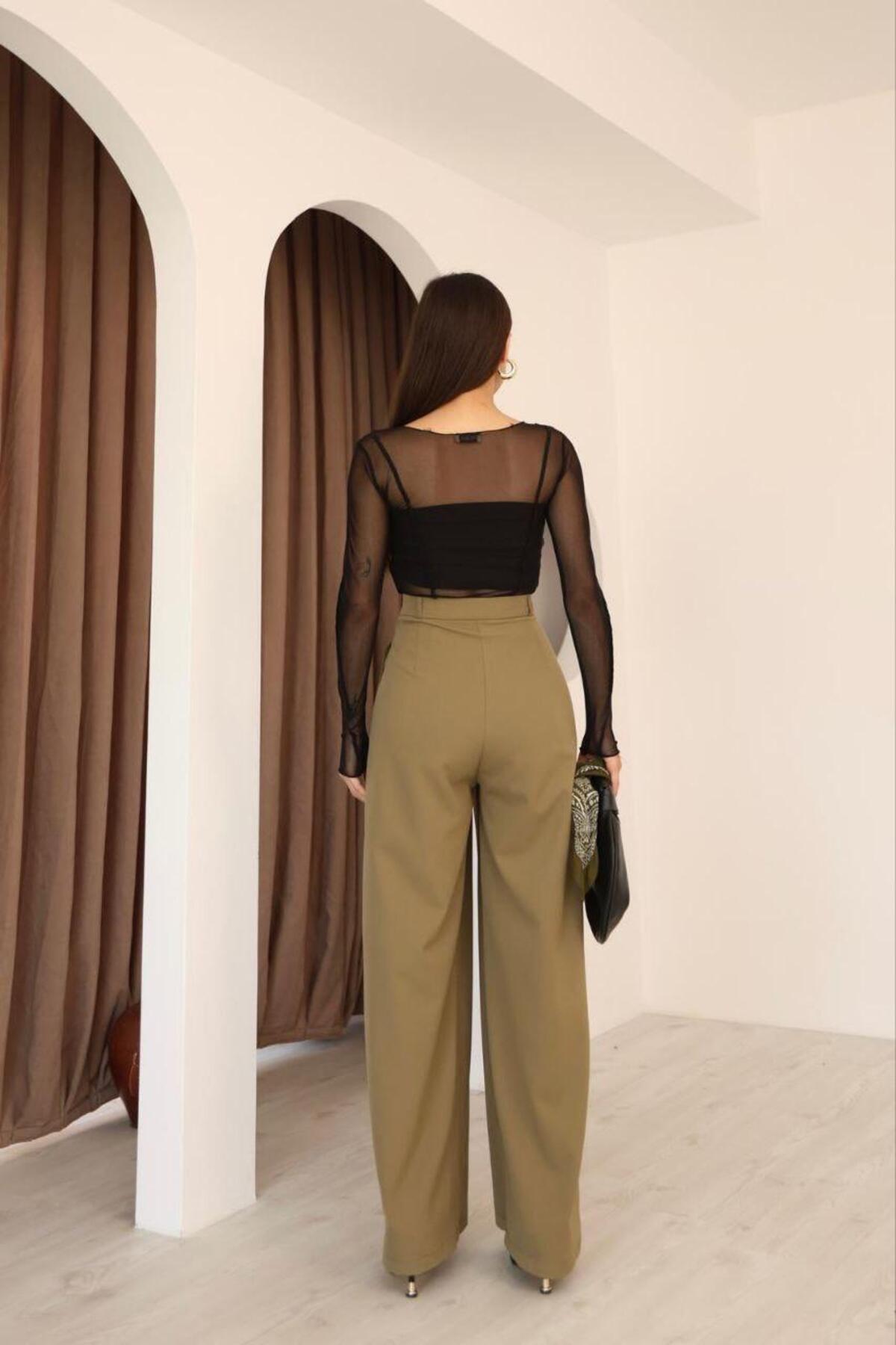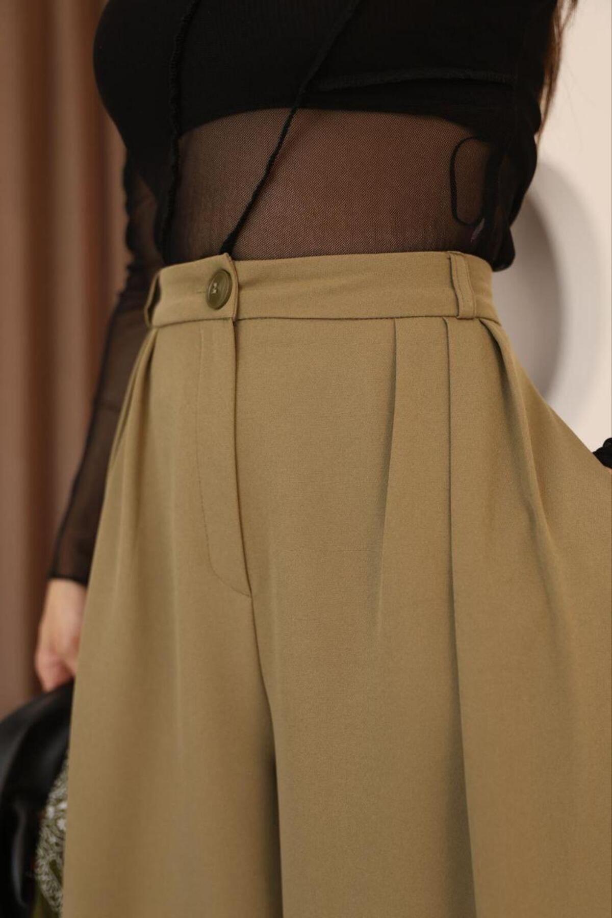 Kadın Haki Pileli Yüksek Bel Palazzo Pantolon Kadın Haki Pileli Yüksek Bel Palazzo Pantolon POL6020 42