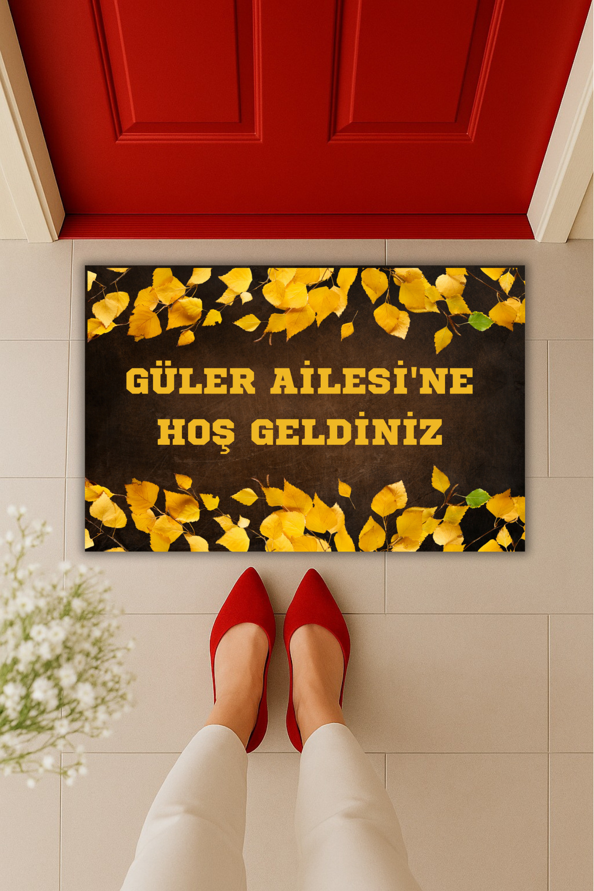 Yüksek Kaliteli Modern Dijital Baskı - Sarı Sonbahar Yapraklı Hoş Geldiniz Yazılı Kapı Önü Paspası Yüksek Kaliteli Modern Dijital Baskı - Sarı Sonbahar Yapraklı Hoş Geldiniz Yazılı Kapı Önü Paspası D9420 70 x 45