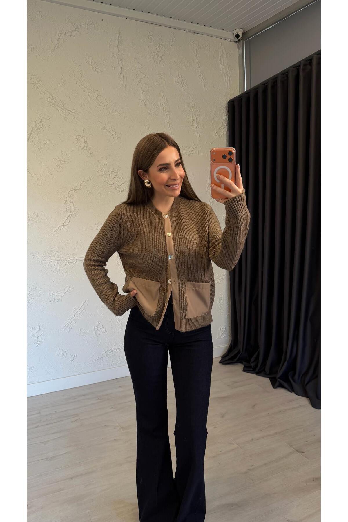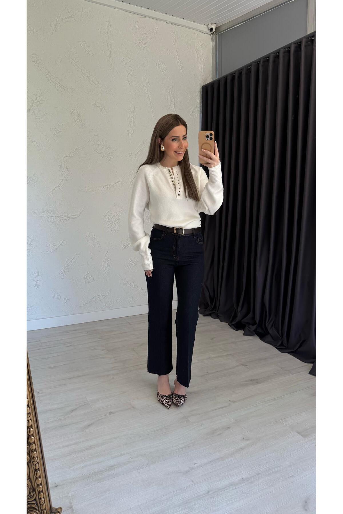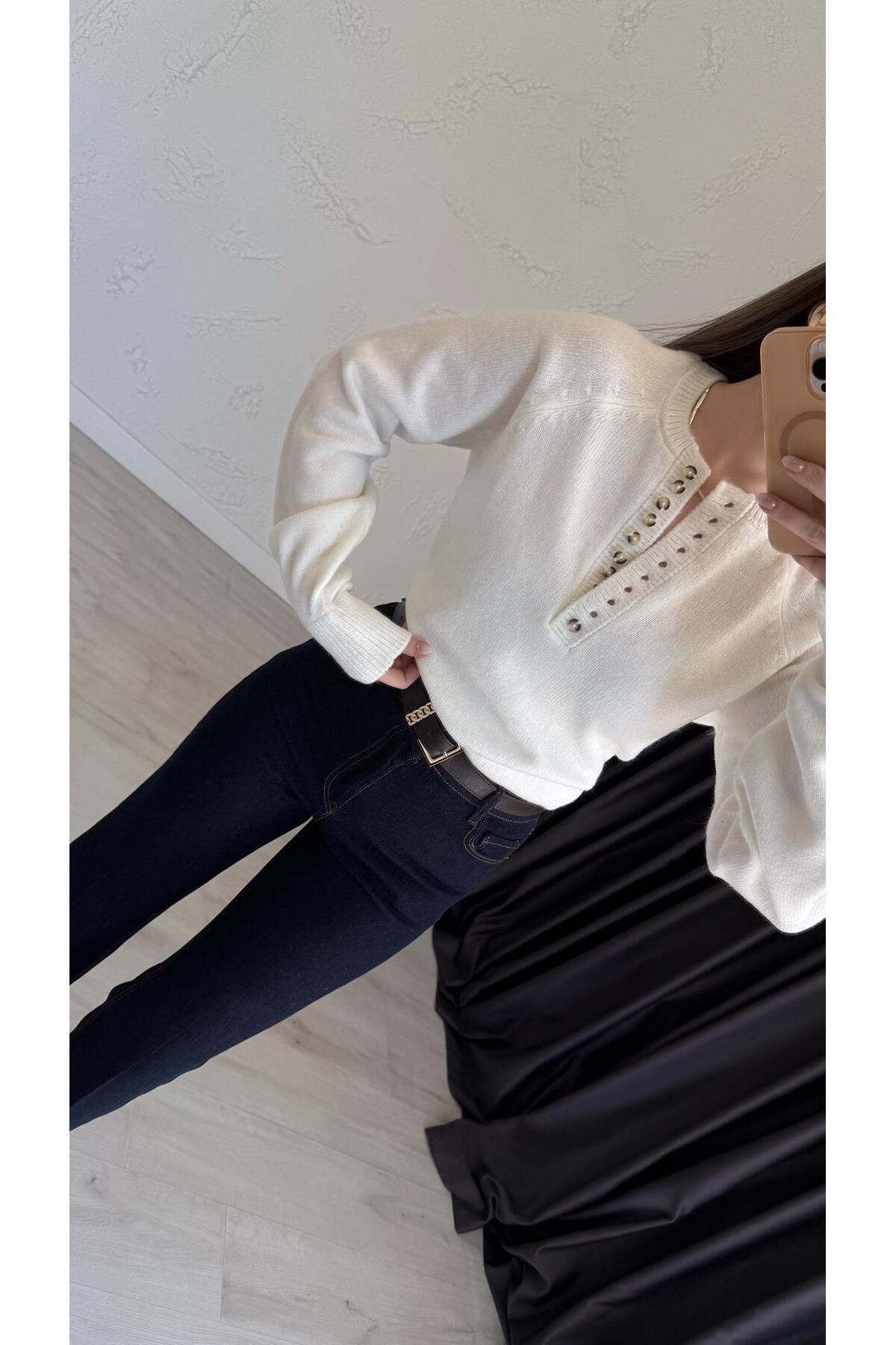Tastte Düğmeli Triko Kazak Ekru Tastte Düğmeli Triko Kazak Ekru 7421 Standart