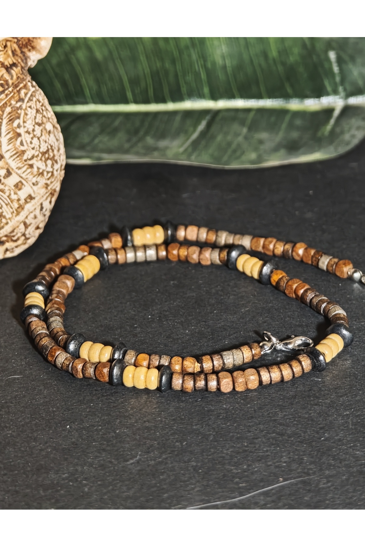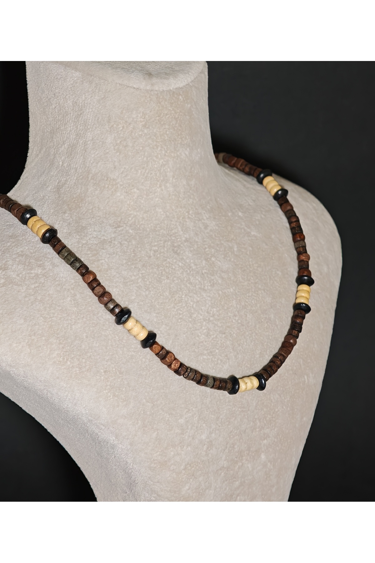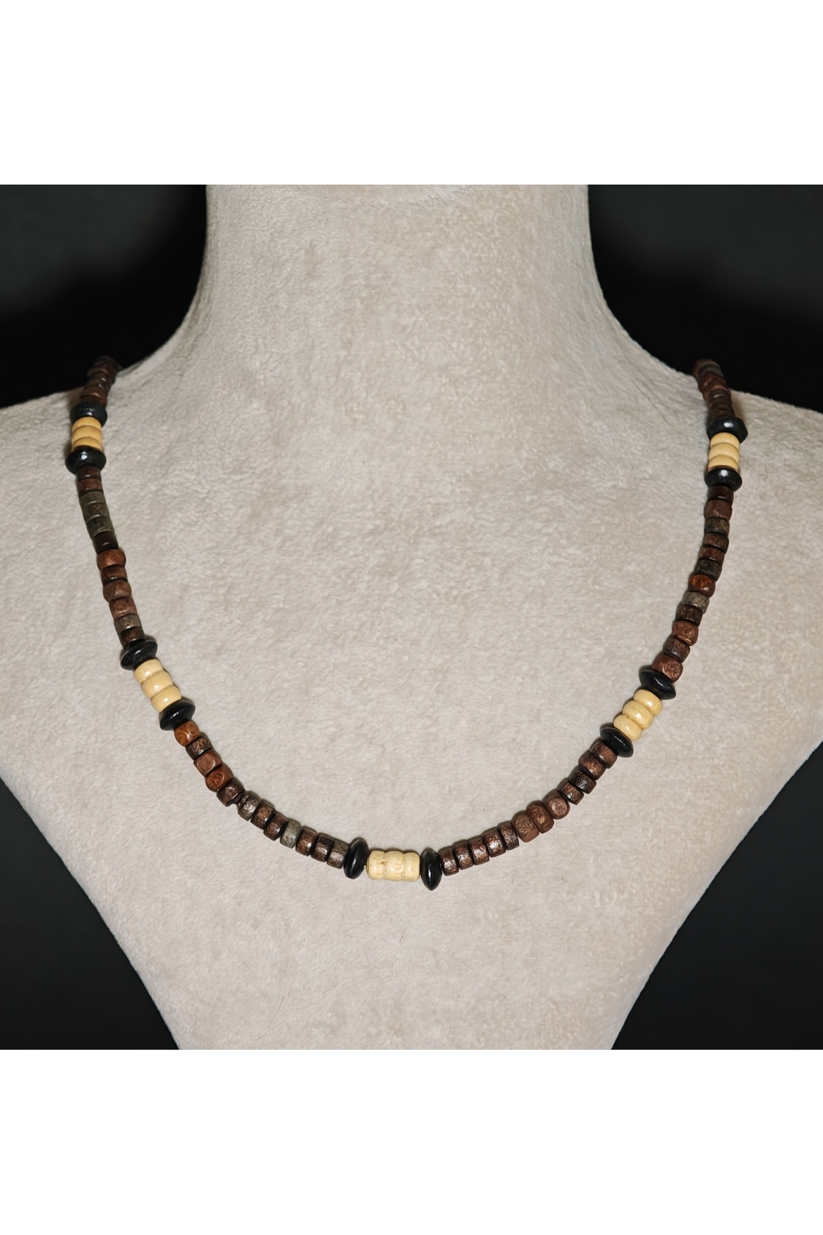 Ahşap boncuk bohem tarzı uzanma zincirli erkek kolye Ahşap boncuk bohem tarzı uzanma zincirli erkek kolye 00013 29 cm