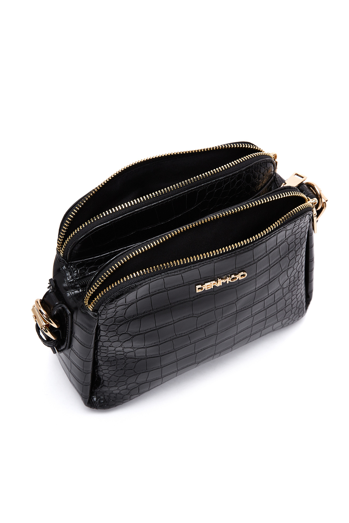 Kadın Siyah Uzun Askılı Kroko Desenli Çapraz Çanta 25WBD2820E3 Kadın Siyah Uzun Askılı Kroko Desenli Çapraz Çanta 25WBD2820E3 Standart