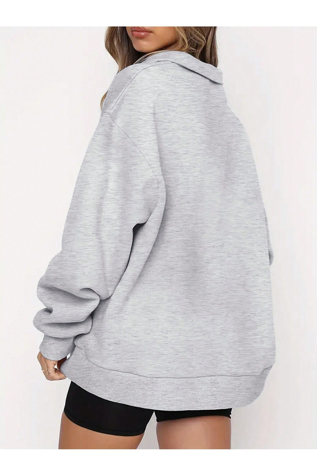 Mama Life Yarım Fermuarlı Sweatshirt - Gri Baskılı Oversize Dik Yaka Mama Life Yarım Fermuarlı Sweatshirt - Gri Baskılı Oversize Dik Yaka MMLFDKYK-CA XL
