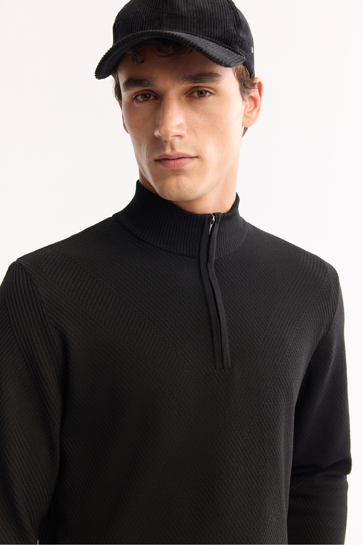 Erkek Siyah Dik Yaka Fermuarlı Dokulu Triko Regular Fit Kazak A52Y5150 Erkek Siyah Dik Yaka Fermuarlı Dokulu Triko Regular Fit Kazak A52Y5150 3XL