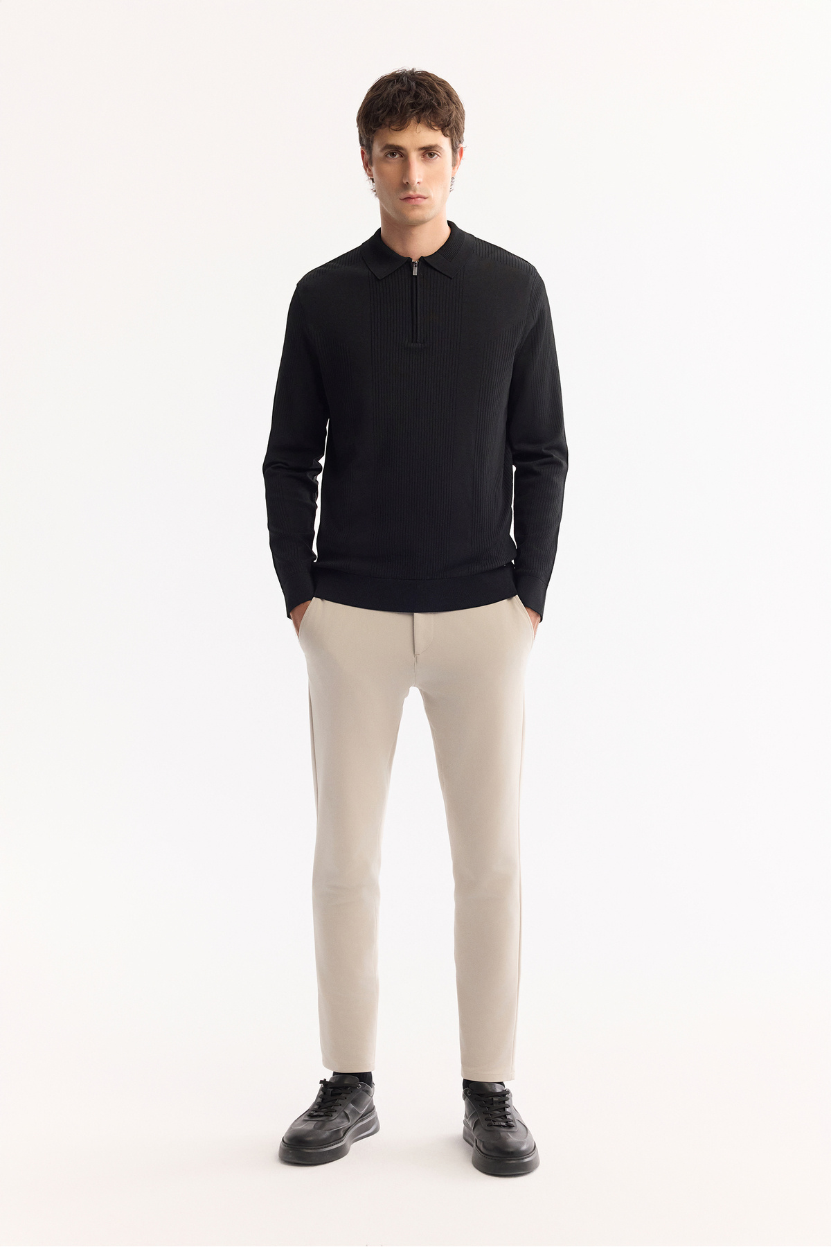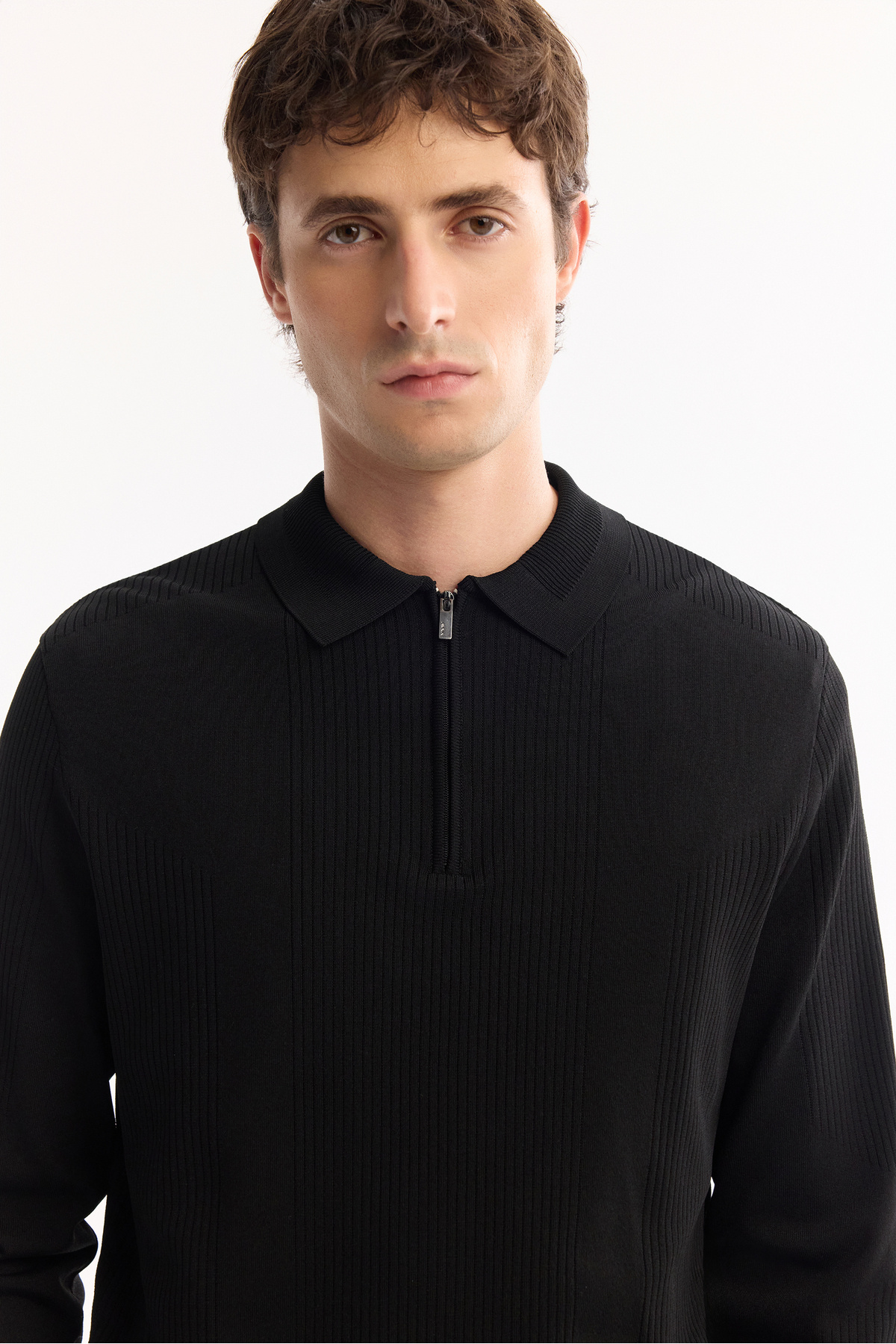 Erkek Siyah Polo Yaka Fermuarlı Rayon Tüylenmeyen Dokulu Triko Regular Fit Kazak A52Y5019 Erkek Siyah Polo Yaka Fermuarlı Rayon Tüylenmeyen Dokulu Triko Regular Fit Kazak A52Y5019 3XL