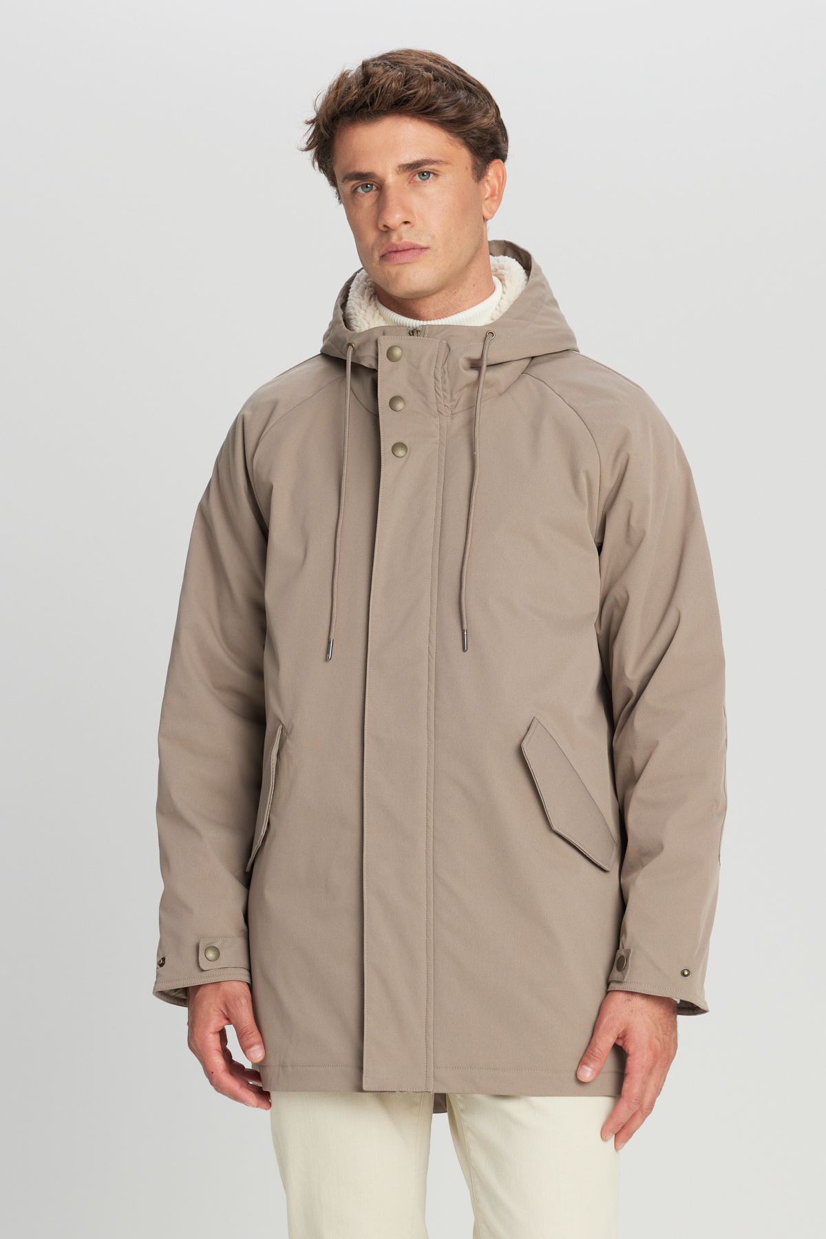 Erkek Bej Standart Fit Normal Kesim Kapüşonlu Dik Yaka Yan Cepli Mont Kaban Erkek Bej Standart Fit Normal Kesim Kapüşonlu Dik Yaka Yan Cepli Mont Kaban ETE007261050 2XL