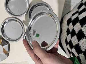 6'lı Çerezlik ve Kahvaltılık Mezelik Düz Tabak Dekoratif Sunum Tepsi Paslanmaz Çelik 11 cm Reçellik 6'lı Çerezlik ve Kahvaltılık Mezelik Düz Tabak Dekoratif Sunum Tepsi Paslanmaz Çelik 11 cm Reçellik DPT-11-6 تک سایز