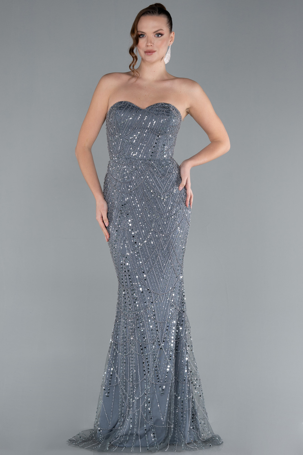 Antrasit Straplez Boncuk İşlemeli Şal Detaylı Uzun Abiye ABU4517 Antrasit Straplez Boncuk İşlemeli Şal Detaylı Uzun Abiye ABU4517 44