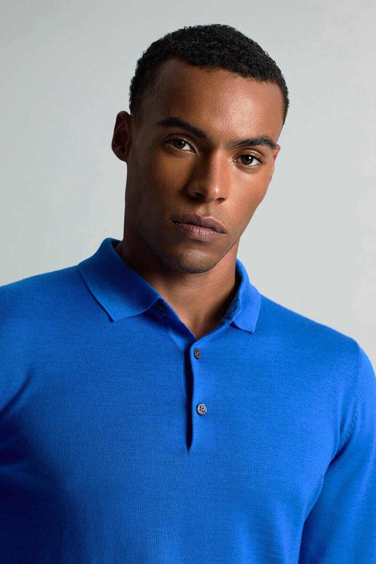 Merino Yünü Polo Yaka Mavi Triko Merino Yünü Polo Yaka Mavi Triko 2541227|207 3XL
