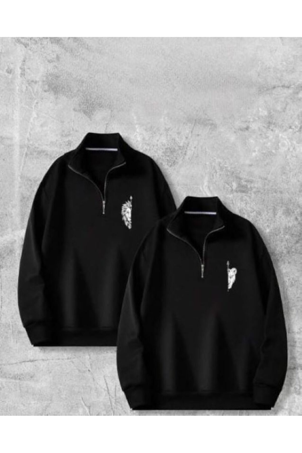 Yarım Fermuarlı Sweatshirt Sevgili Çift Kombini Siyah 2'li Set Yarım Fermuarlı Sweatshirt Sevgili Çift Kombini Siyah 2'li Set 2045035510 M/M