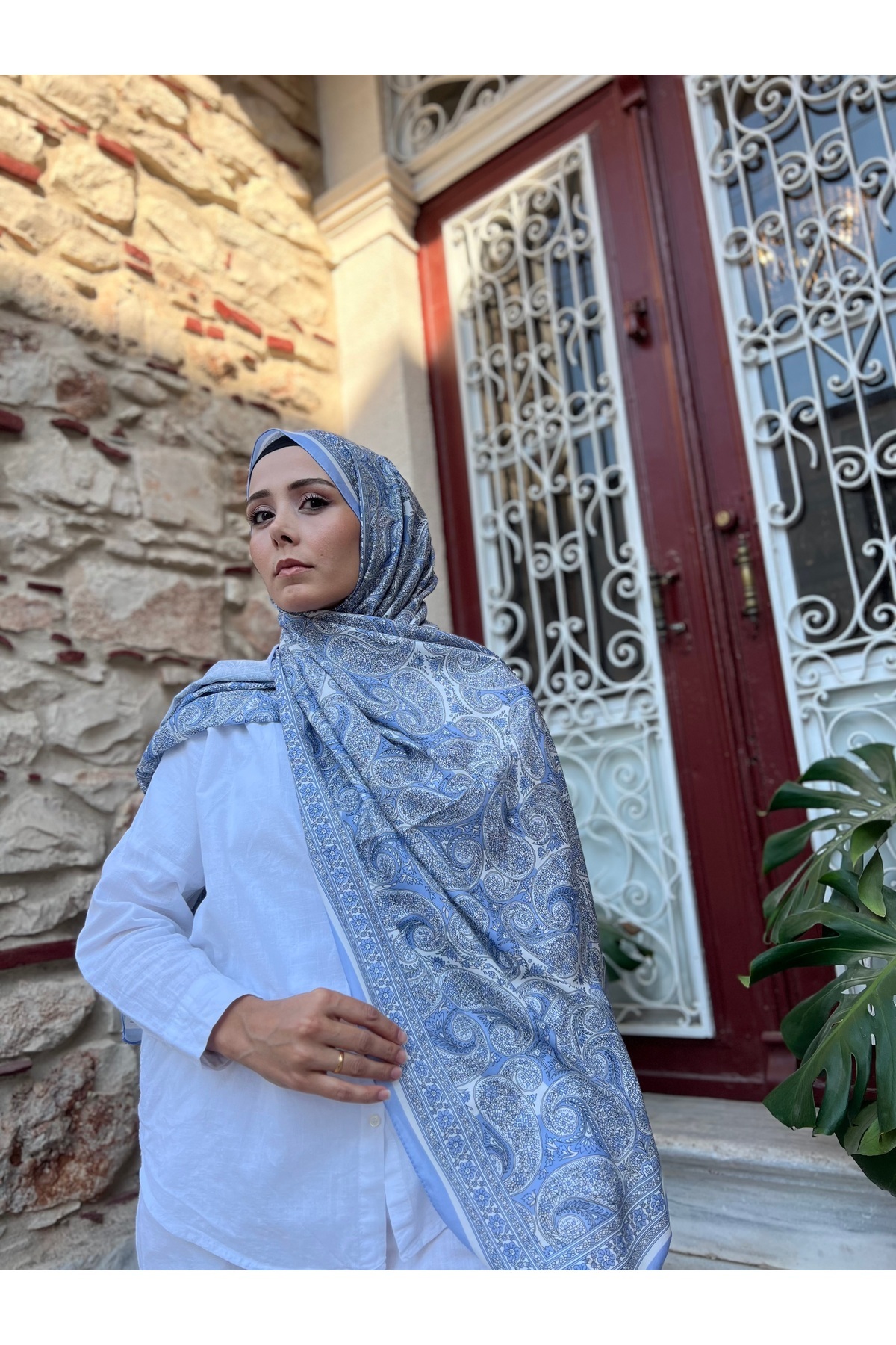 Mavi Desenli Pamuklu Soft Şal Mavi Desenli Pamuklu Soft Şal MM0015 75 x 180