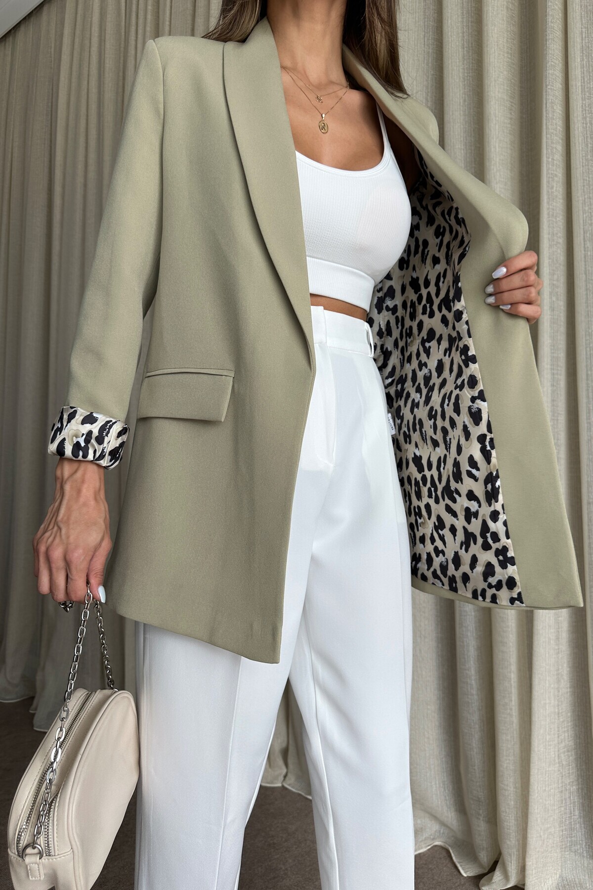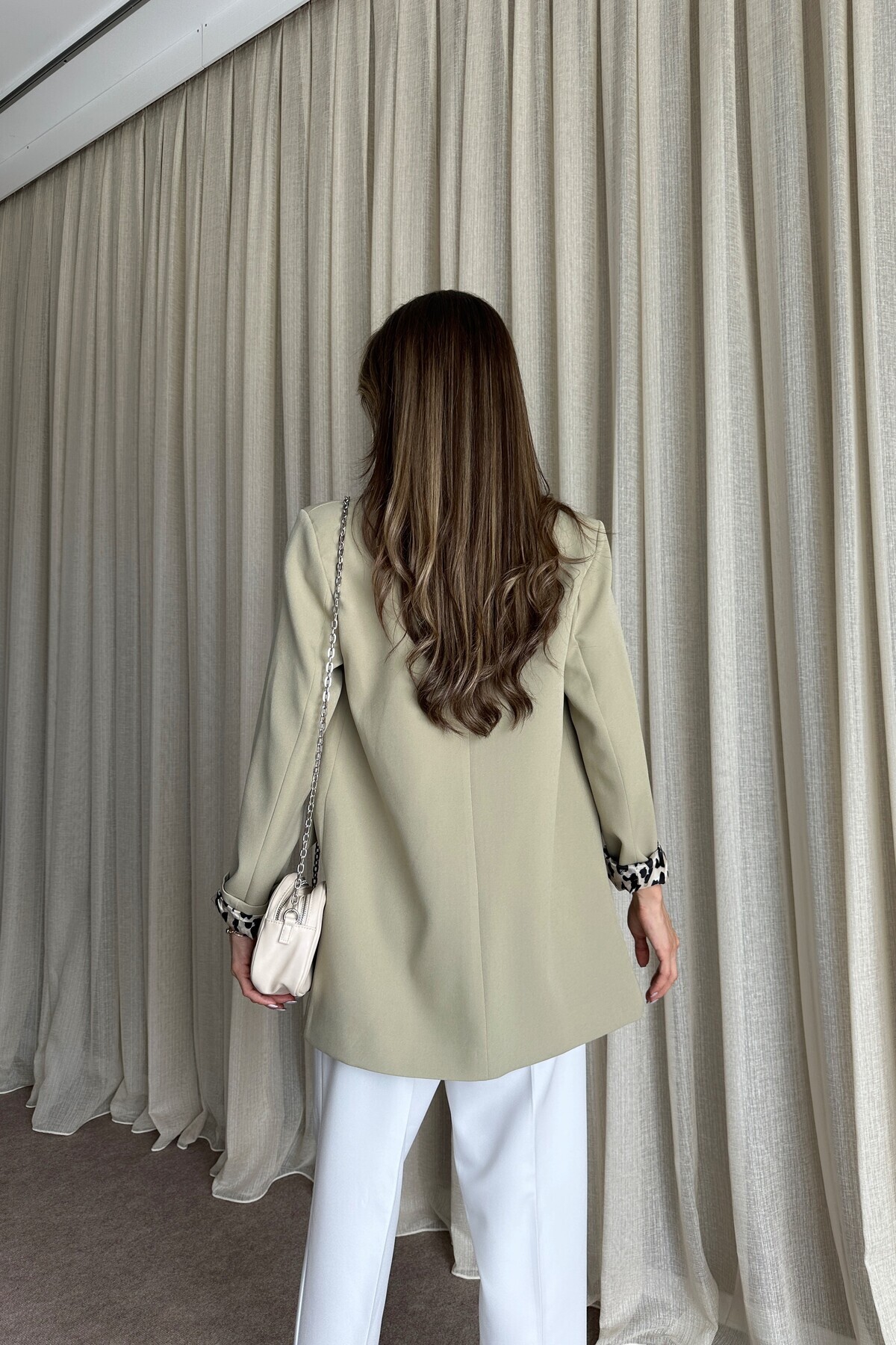 Kadın Yağ Yeşil Blazer Astarlı Uzun Ceket Kadın Yağ Yeşil Blazer Astarlı Uzun Ceket CO635 XL